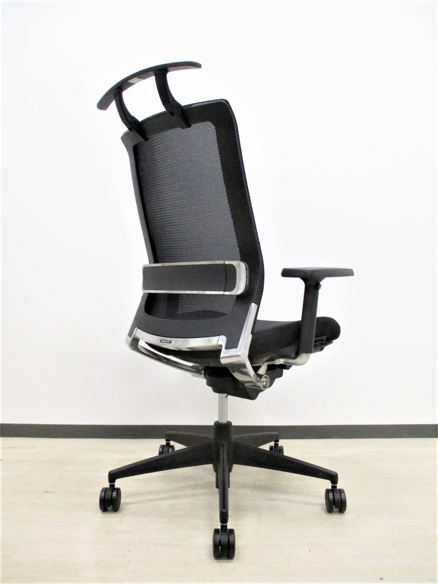 【スマートなデザインの上質チェア!】■コクヨ製 エアフォート 肘付ハイバックチェア ■ブラック ランバーサポート付き 可動肘