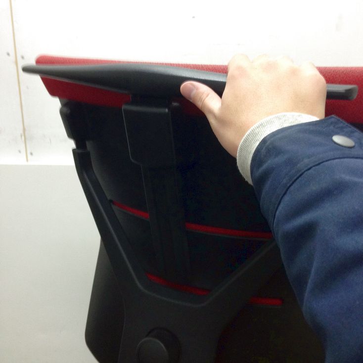 背もたれ部を後傾させても座面の前方が高くならないので太股を圧迫しません。