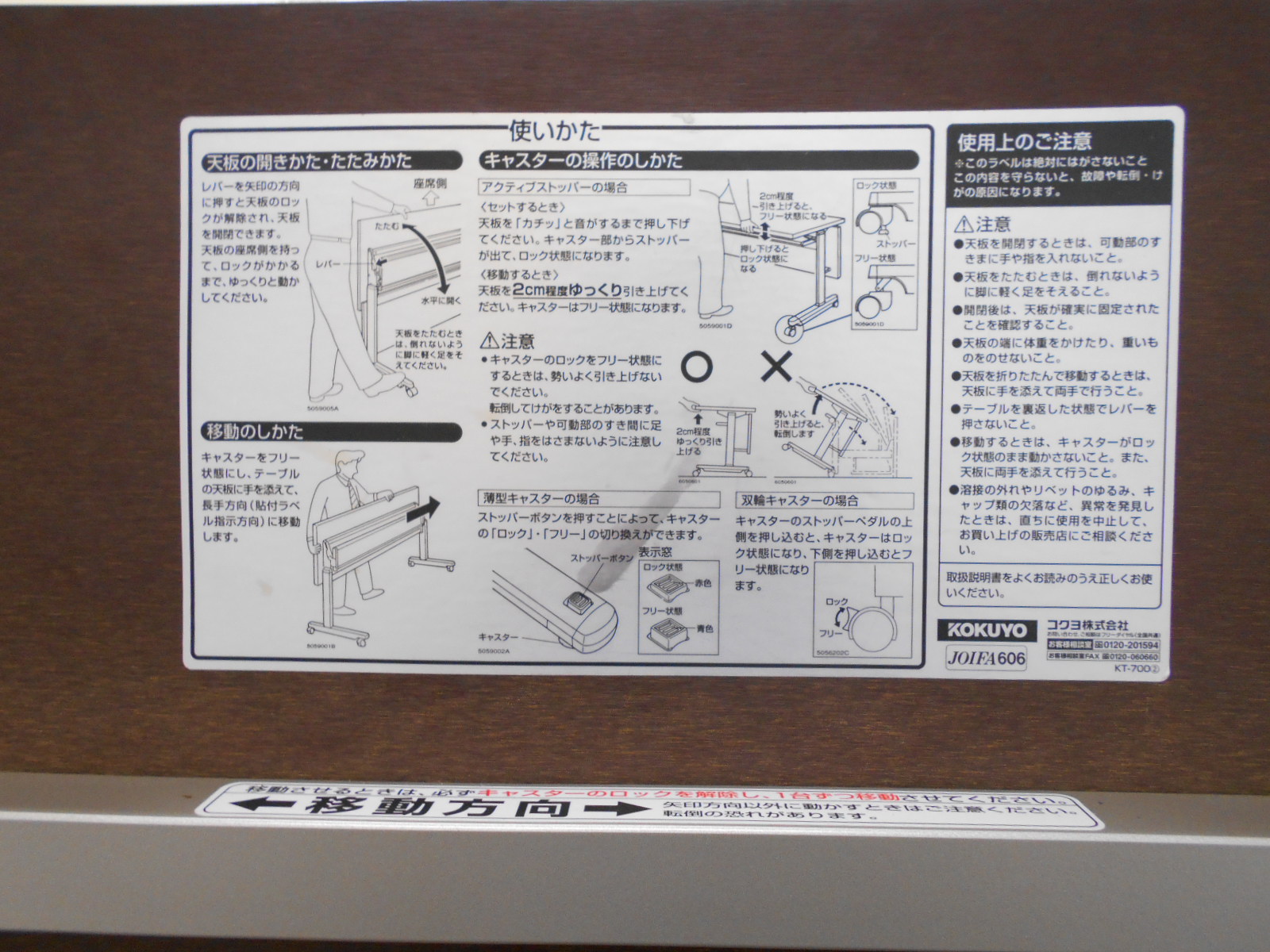 - 壊れている天板歪み、アジャスター無し、キャスター使用不可のようにそのテーブルの本来の効用を果たすための機能に不具合がある。