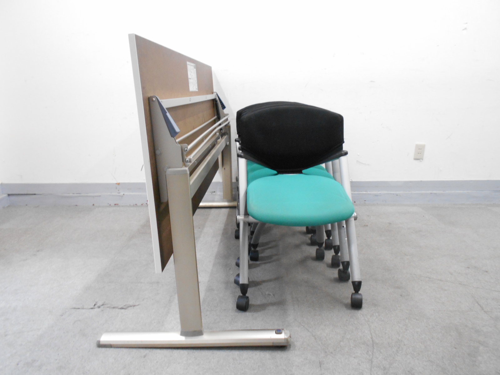 【KS】[お得なテーブルセット!]コクヨのミーティングセット!使わないときはテーブルを畳んでチェアを重ねればスペースとりません!- 茨城南店