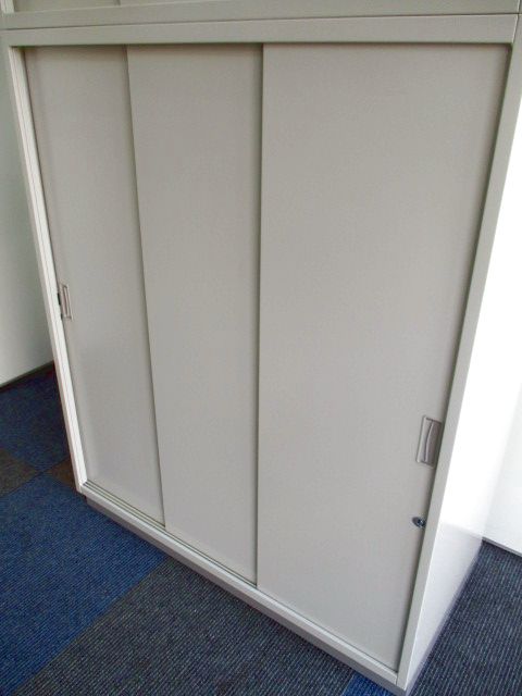 【在庫入替セール】【1台限定】【省スペース化に嬉しい味方!】■イトーキ(ITOKI)製 シンラインシリーズ 書庫セット(3枚引き違い+3段ラテラル) ■シリンダー錠 ■ニューグレー【エレベーター搬入も安心!】【T10】