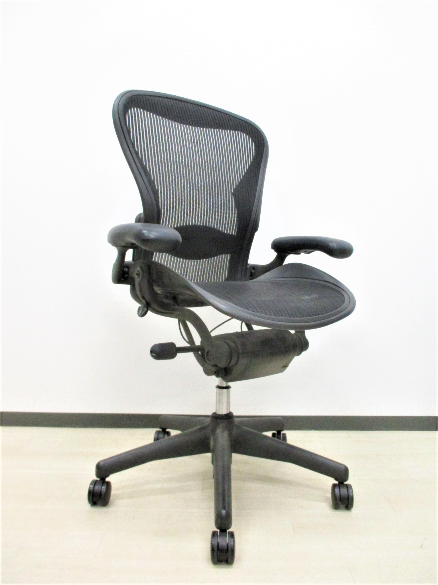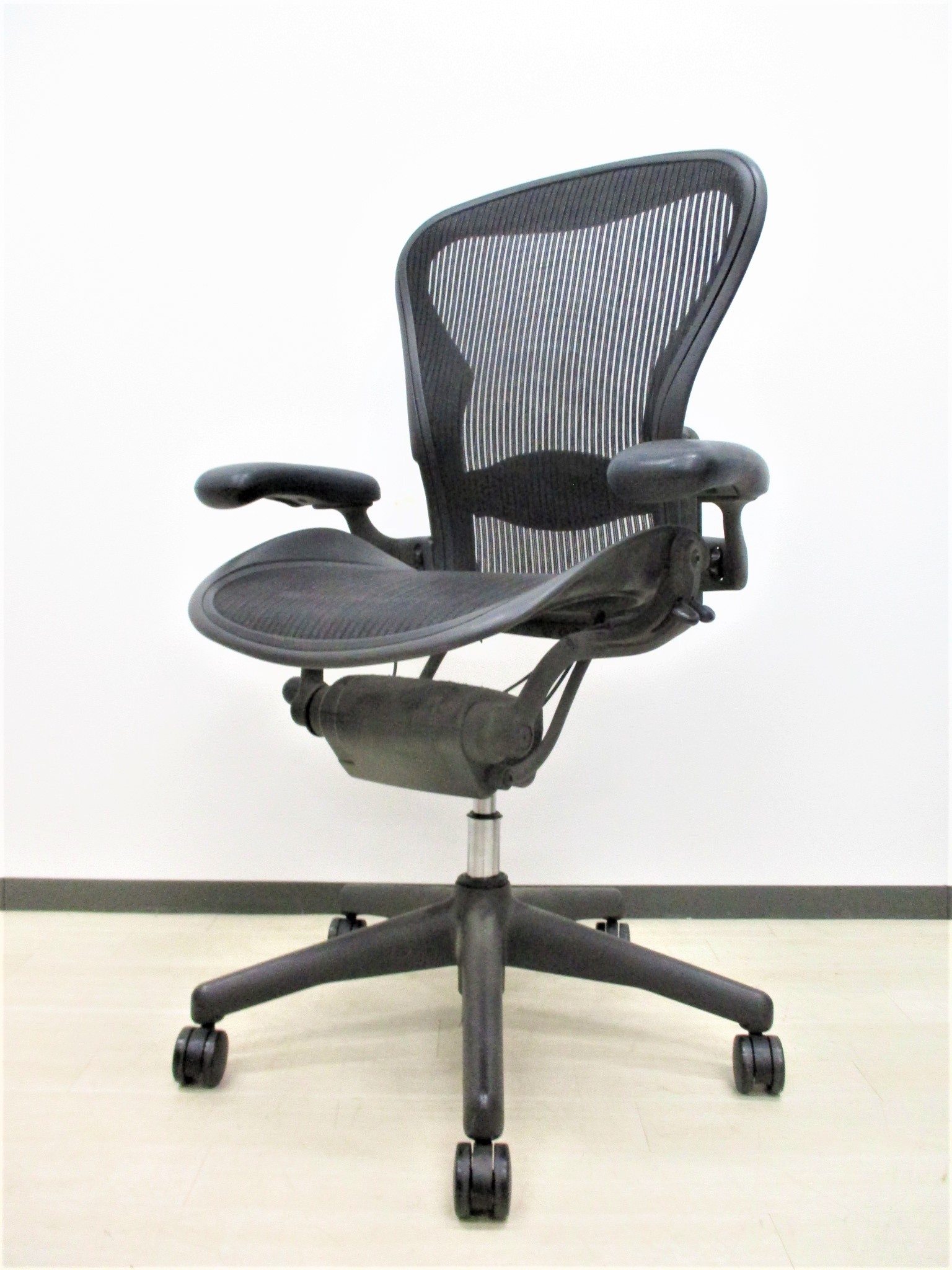 【★状態イマイチのためお安く!】■ハーマンミラー製 アーロンチェア Bサイズ 固定肘 ※キズあり・ランバーサポート無・昇降ガス圧弱めのためお安く!【訳あり特価品】