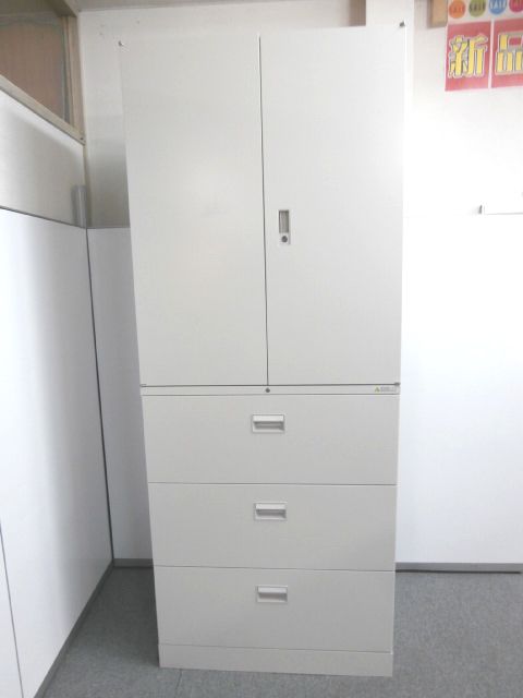 【まとめて揃います!】使い勝手の良い3枚引き違い書庫と3段ラテラルのセット!オカムラ/42シリーズ/ニューグレー/シリンダー錠【TH】【倉庫在庫品】