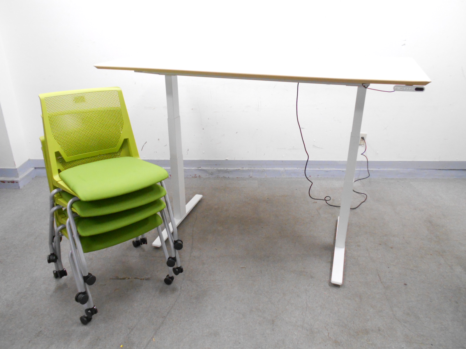 電動昇降テーブルとスタッキングチェアのお得なセットです!