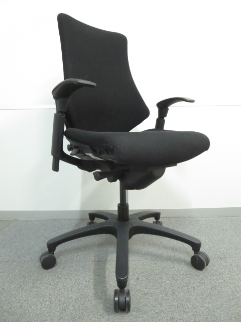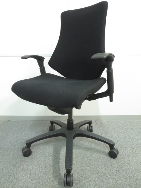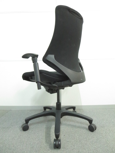 【三次元フォルムが腰にフィット!】希少なエラストマータイプ! ■イトーキ製 エフチェア 肘付 ブラック ハイバック ■姿勢の変化にフレキシブルに対応!
