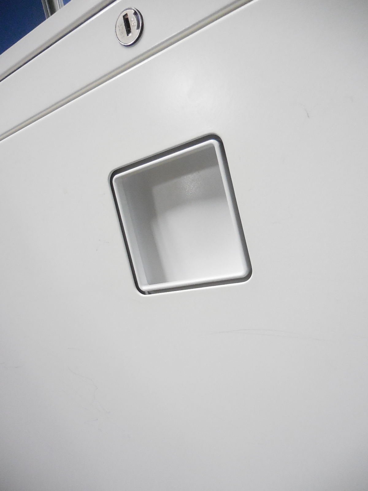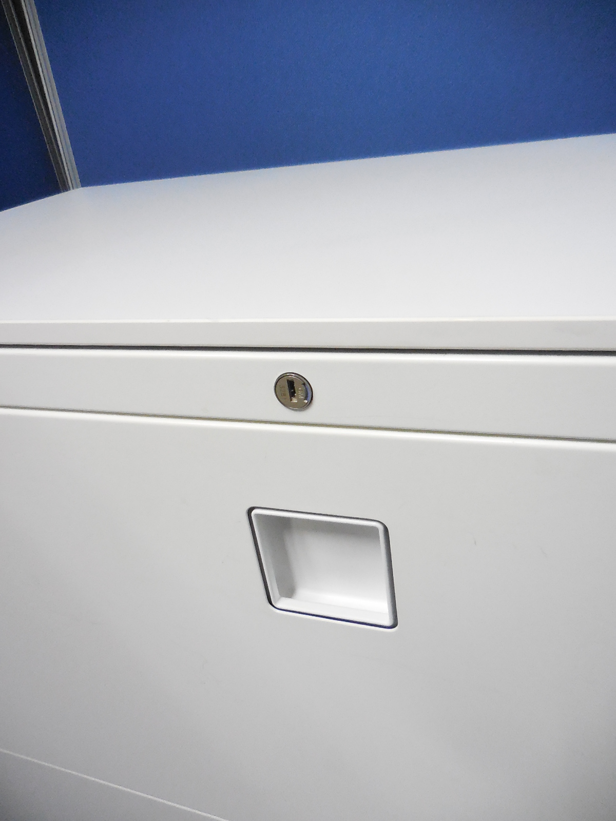 オカムラ レクトライン 3段ラテラル書庫 ホワイト天板 シリンダー錠 鍵付き ※取っ手部分に若干日焼けあり