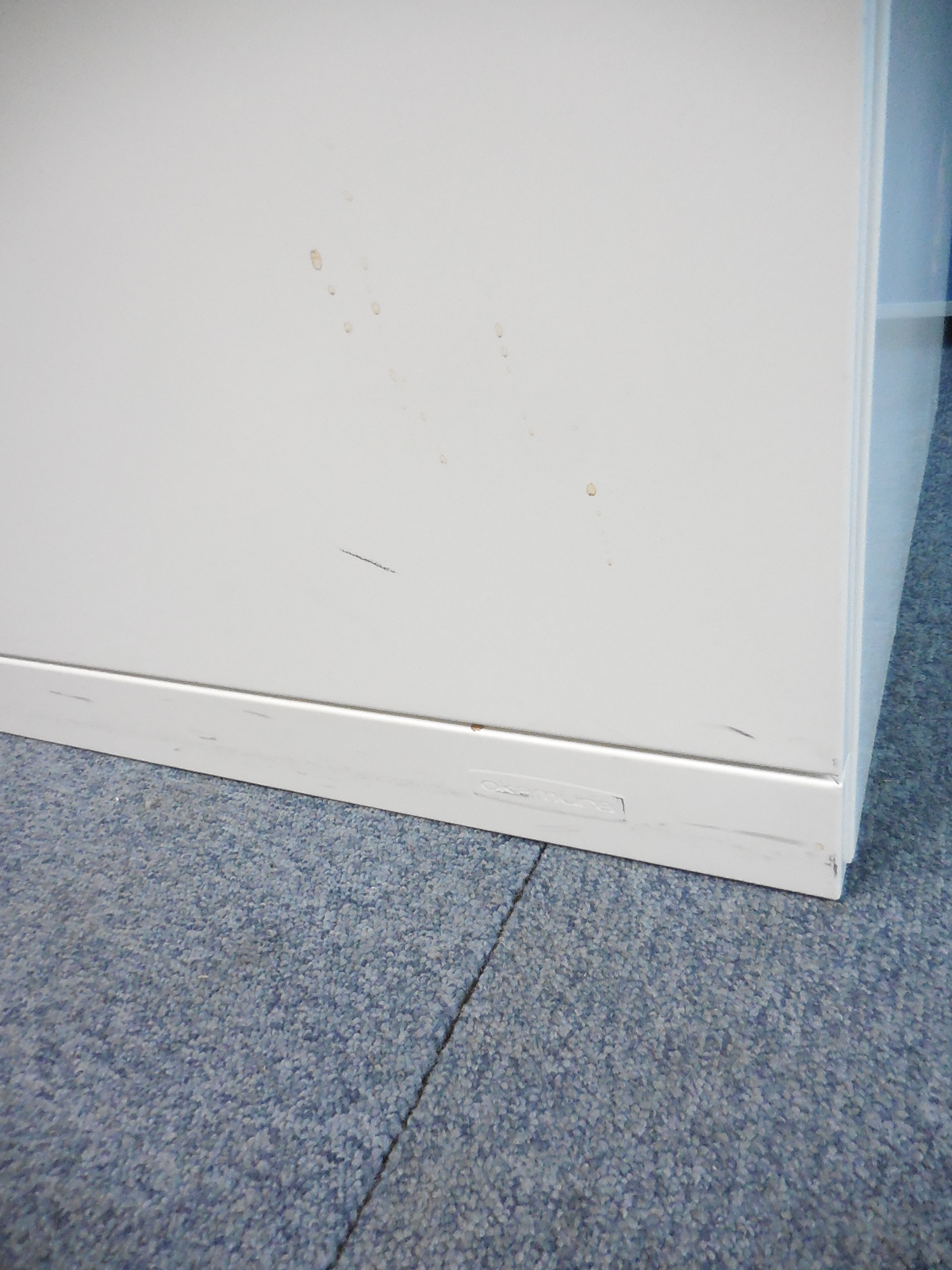 - 目立つ箇所あり傷・凹みが多数、深い傷・凹みが一部ある。(例、天板、正面、背部、サイド部分にある。)