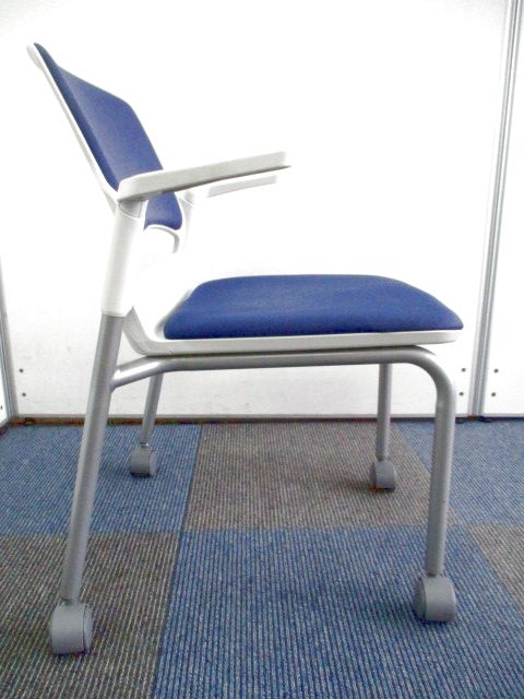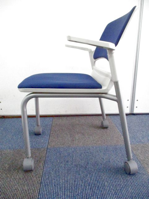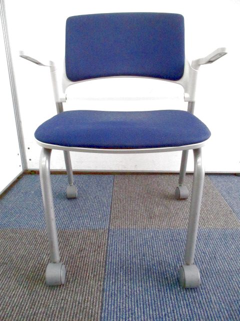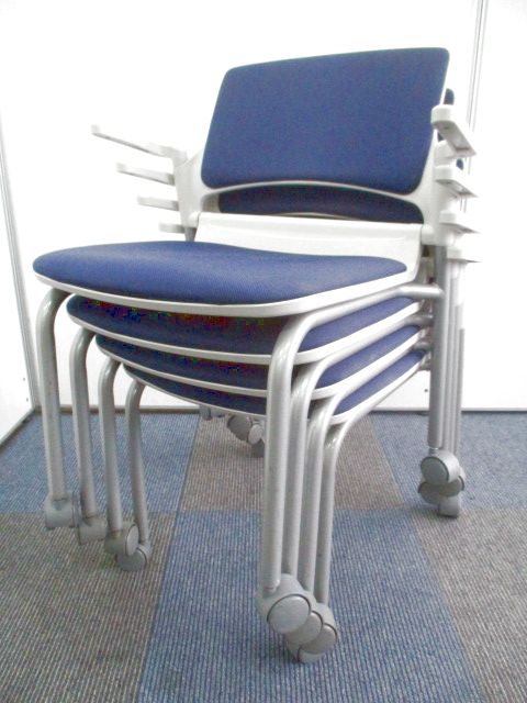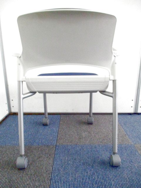 【残り2脚の為、お安く!】【キャスター付きで使いやすい!ミーティングに最適!】■ウチダ(UCHIDA)製 MF-180シリーズ スタッキングチェア ミーティングチェア ■キャスター付き ■レイズンブルー×ホワイトシェル