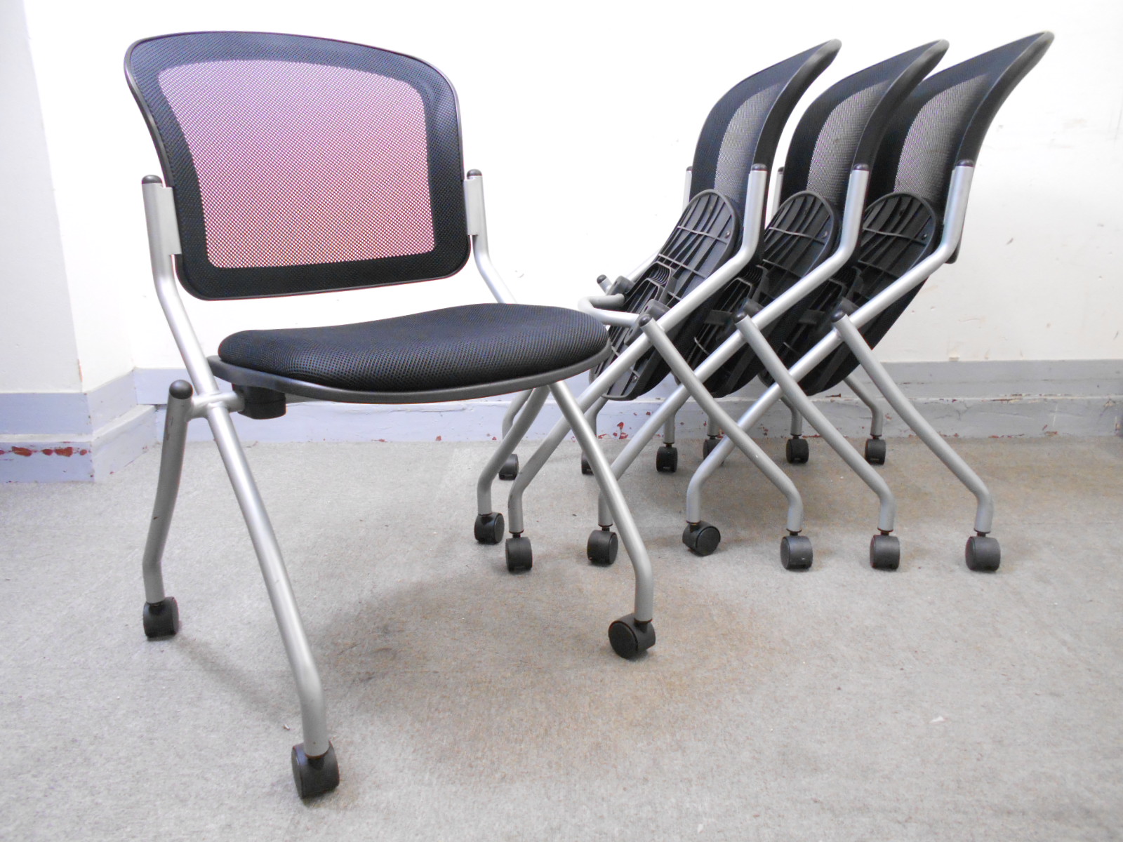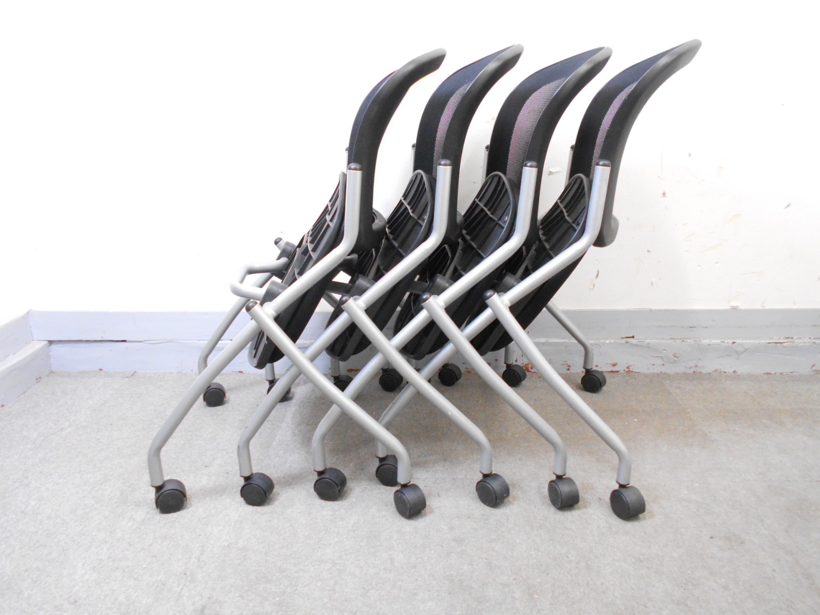 【KS】[お得な四脚セット!]並行スタック式のミーティングチェア!スタックすればスペースも取らないので省スペース![背面メッシュ]- 茨城南店