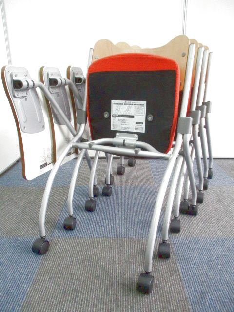メモ台と呼ばれる小さいテーブル(A3サイズ)付きのネスティングチェアになります。