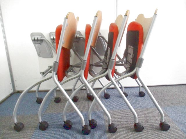 【便利な商品が入荷です!】メモ台付きのネスティングチェア【オフィスが明るくなる色です!】- 千葉店
