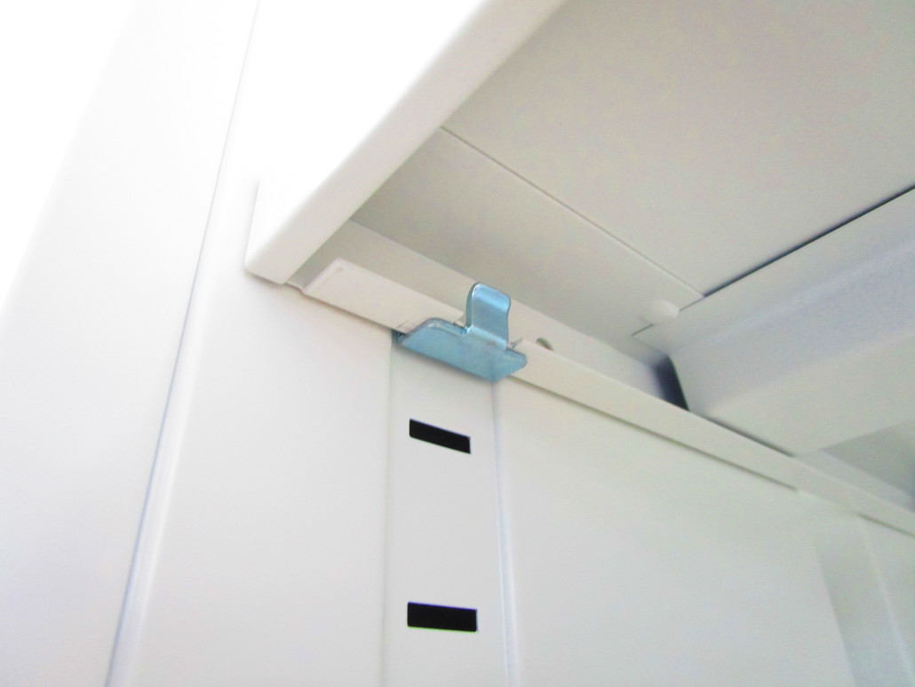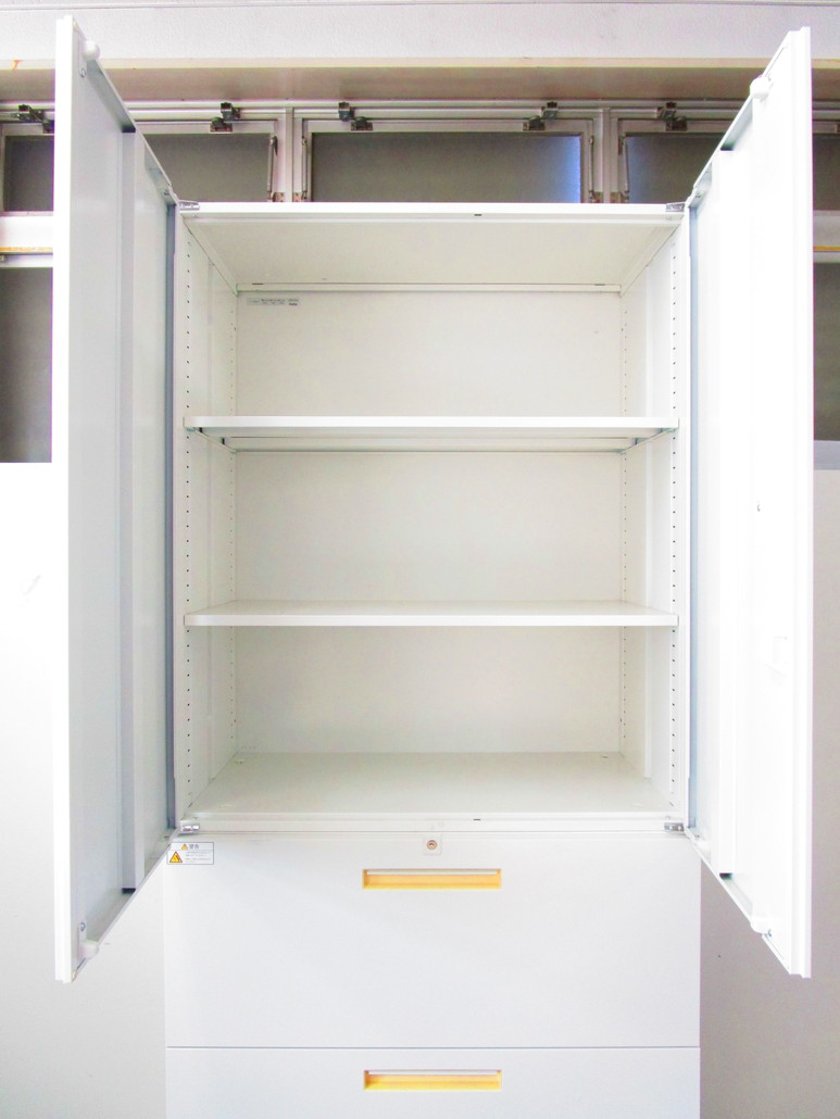 【残り2台!】ホワイトキャビネット■取っ手部分日焼けありのためお安く■頑丈イナバ製両開き+3段ラテラル- 埼玉本店