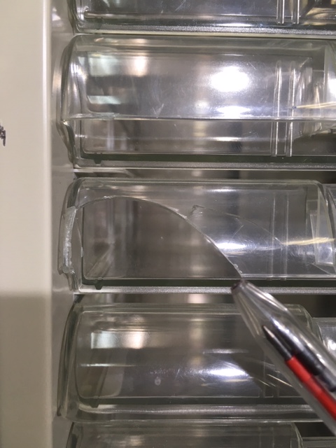 - 壊れている引出の開閉不可、施錠不可、棚板無しといったその書庫の本来の効用を果たすための機能に不具合がある(例、扉、引出の開閉が行えない。)