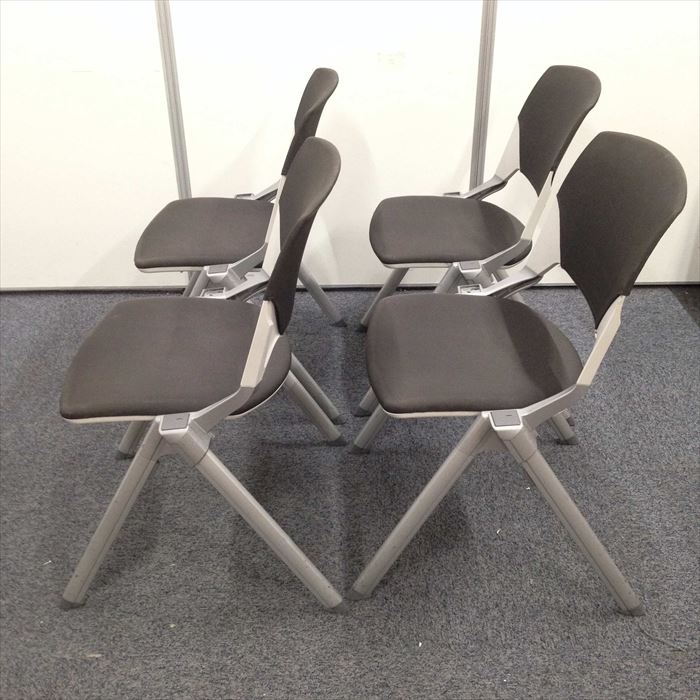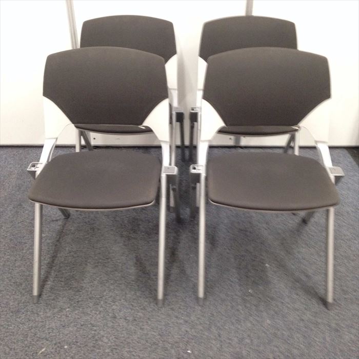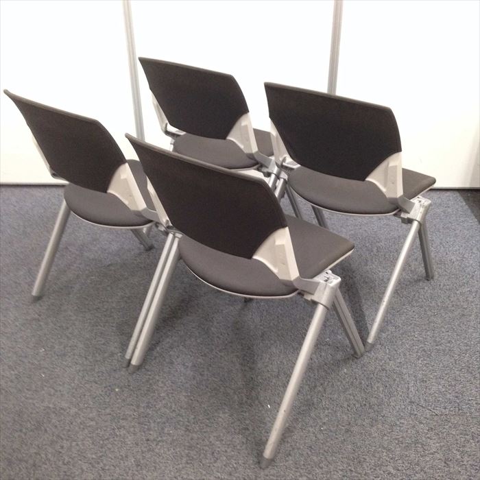 【起業や買い増しにオススメ4脚セット!】■重ねて整理が出来るスタッキングチェア■内田洋行■グレー- 名古屋本店