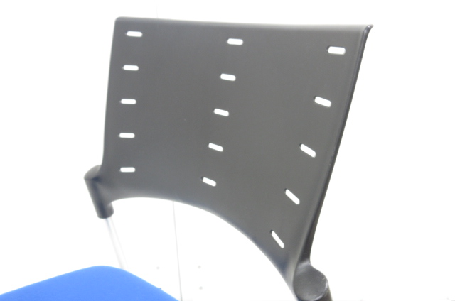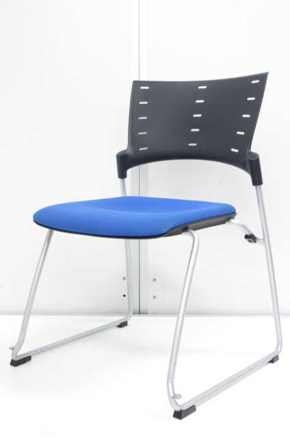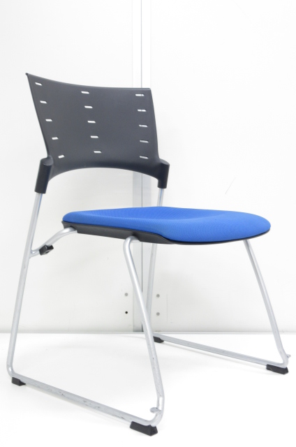 【定価6万円】【ソフトベンディングシェルが背を優しく受け止める!】■イトーキ(ITOKI) マノスチェア(MANOSS) 肘無し スタッキングチェア ミーティングチェア ■背パッド付 ■キャスター脚 ■ブルー
