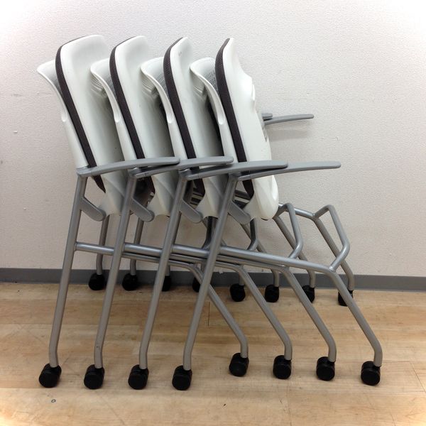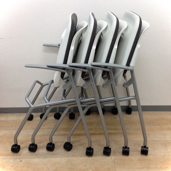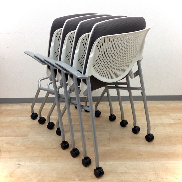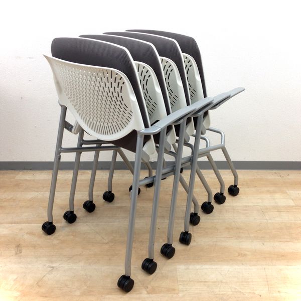 【4名用お得なセット!】■コンパクトにまとまるネスティングチェア!■オカムラ■グラータ■グレー- 岐阜店