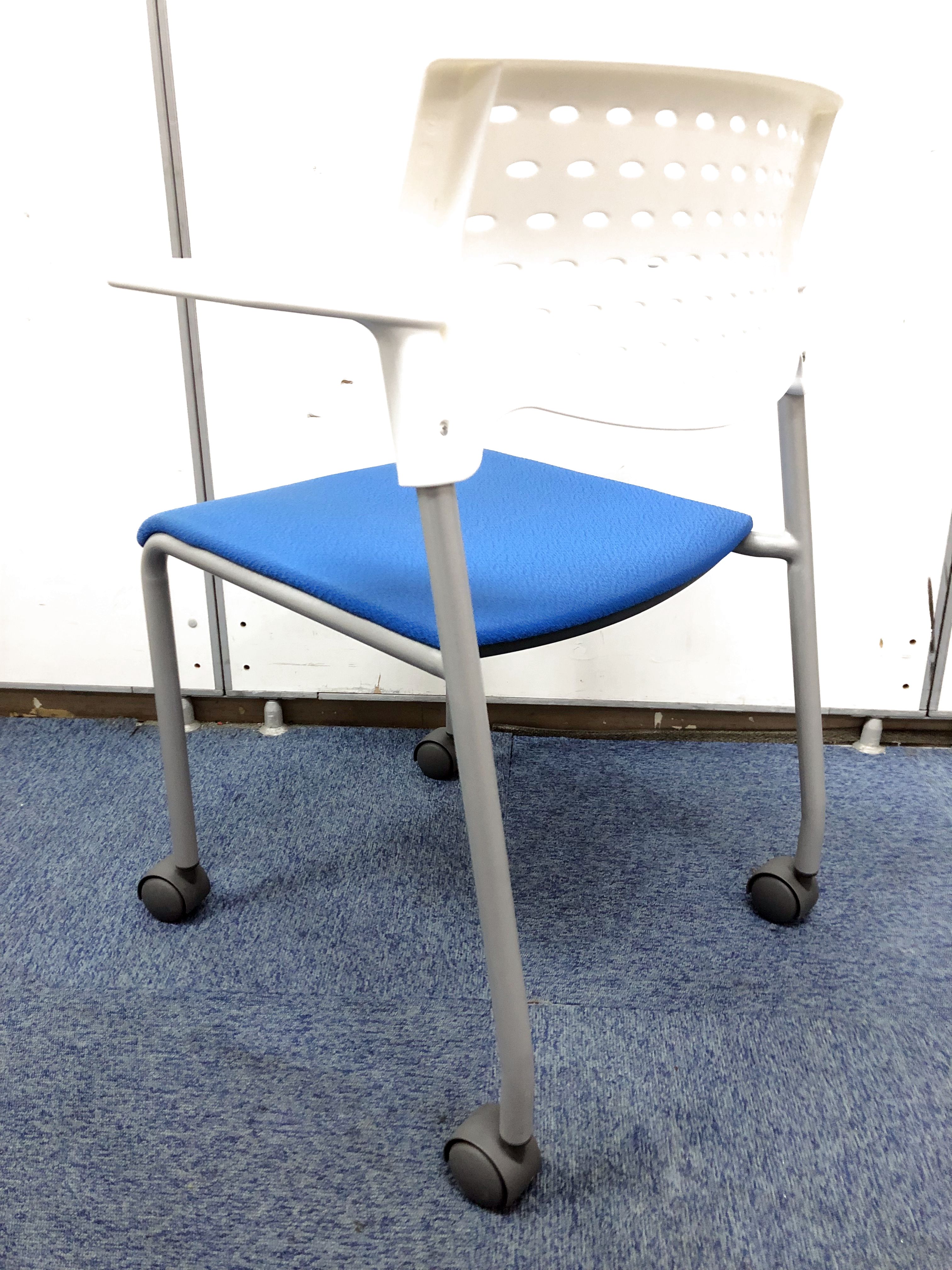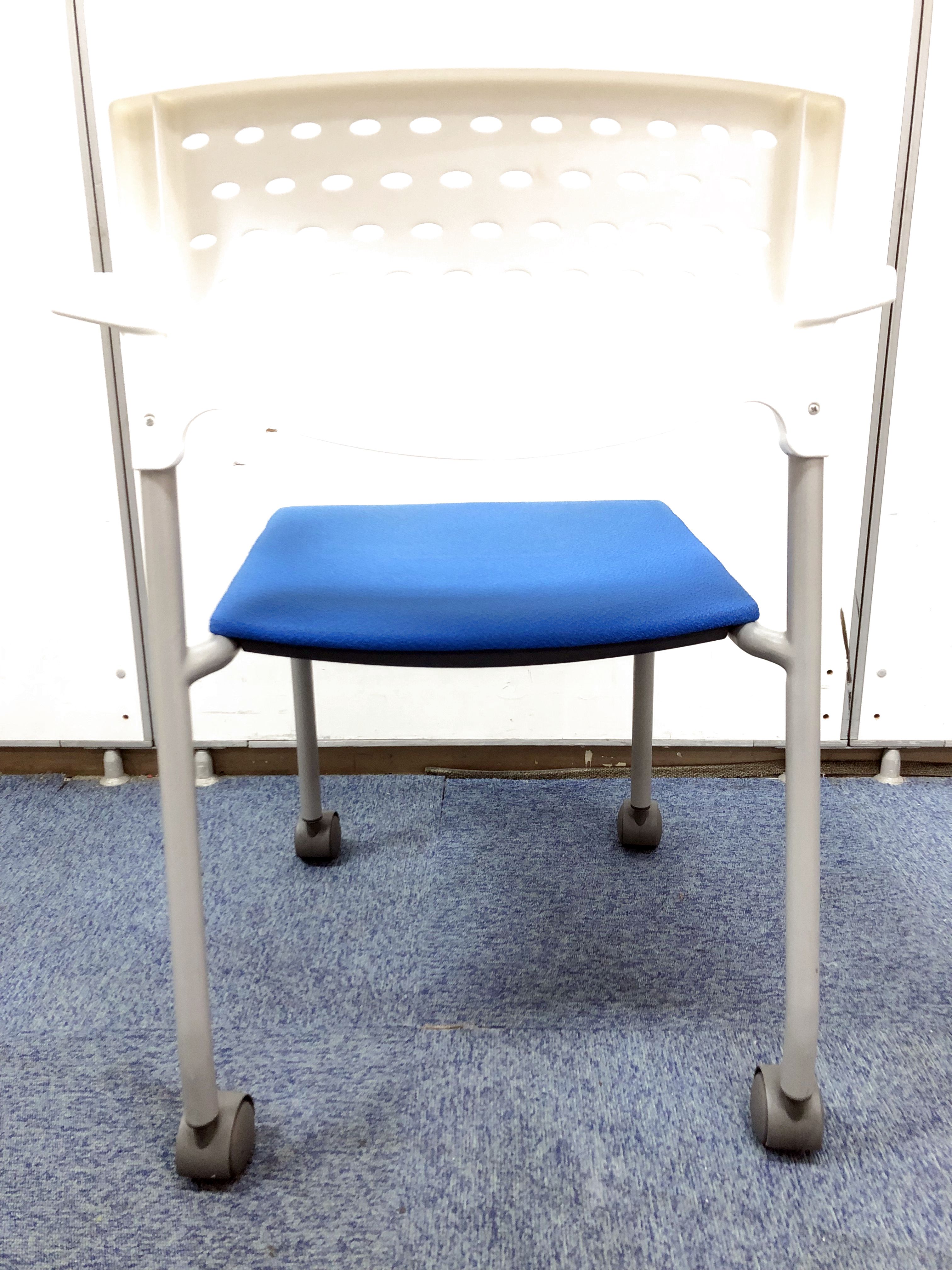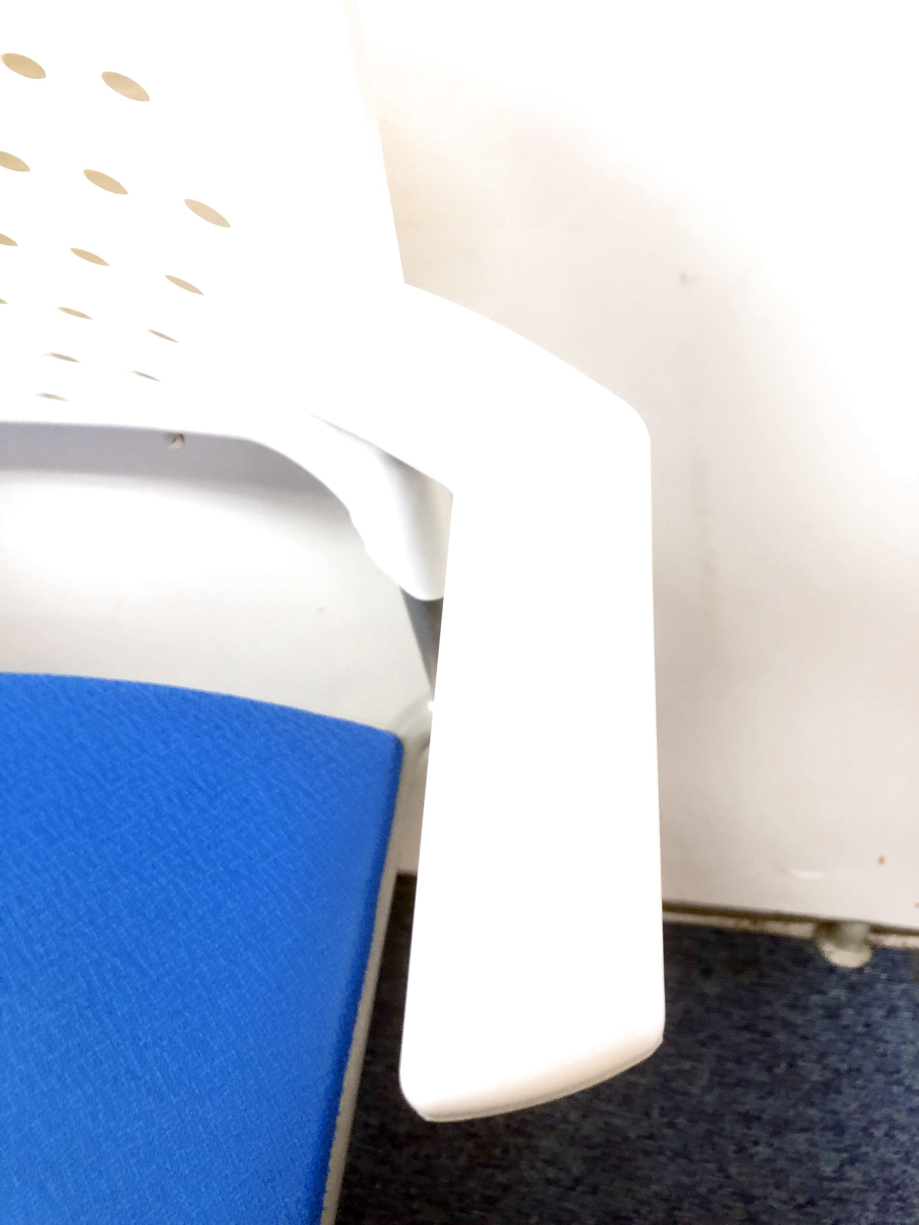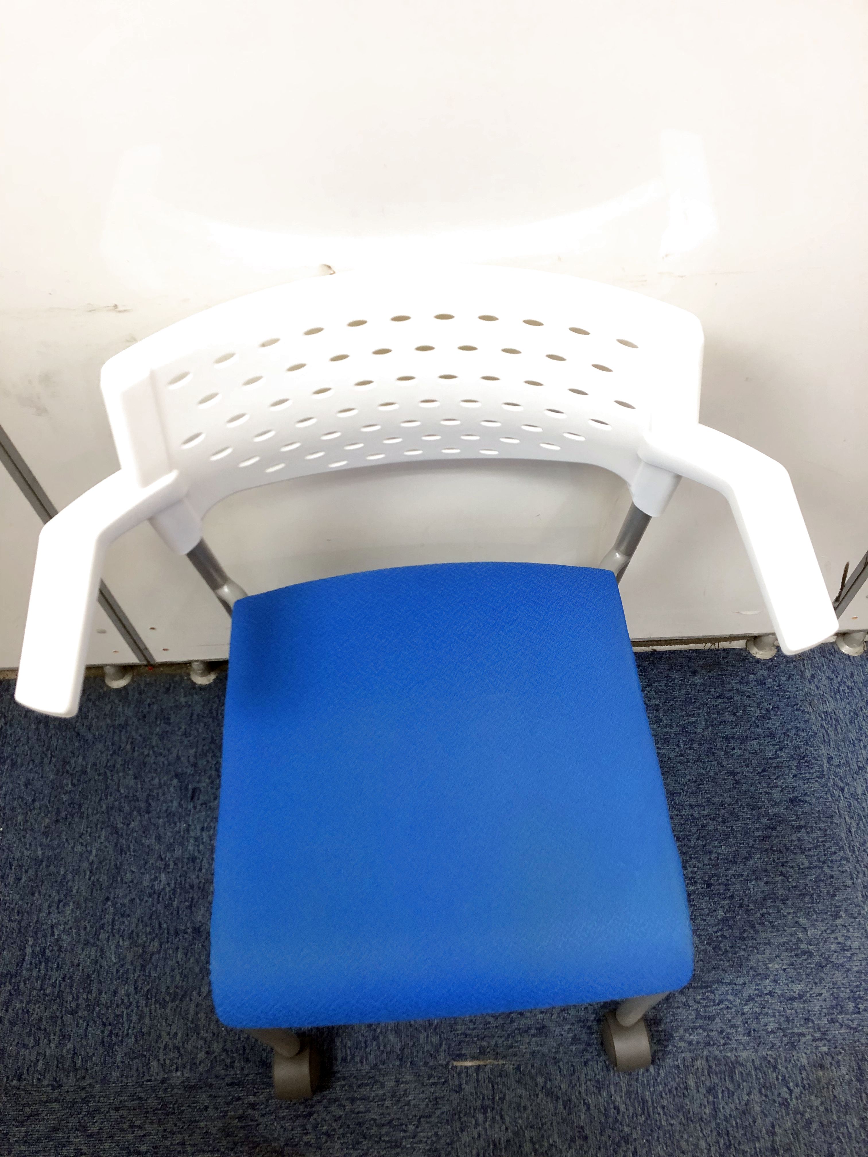 【1脚限りのため特別価格】肘付きスタッキングチェア ブルーxホワイトカラー!!- 京都東寺店