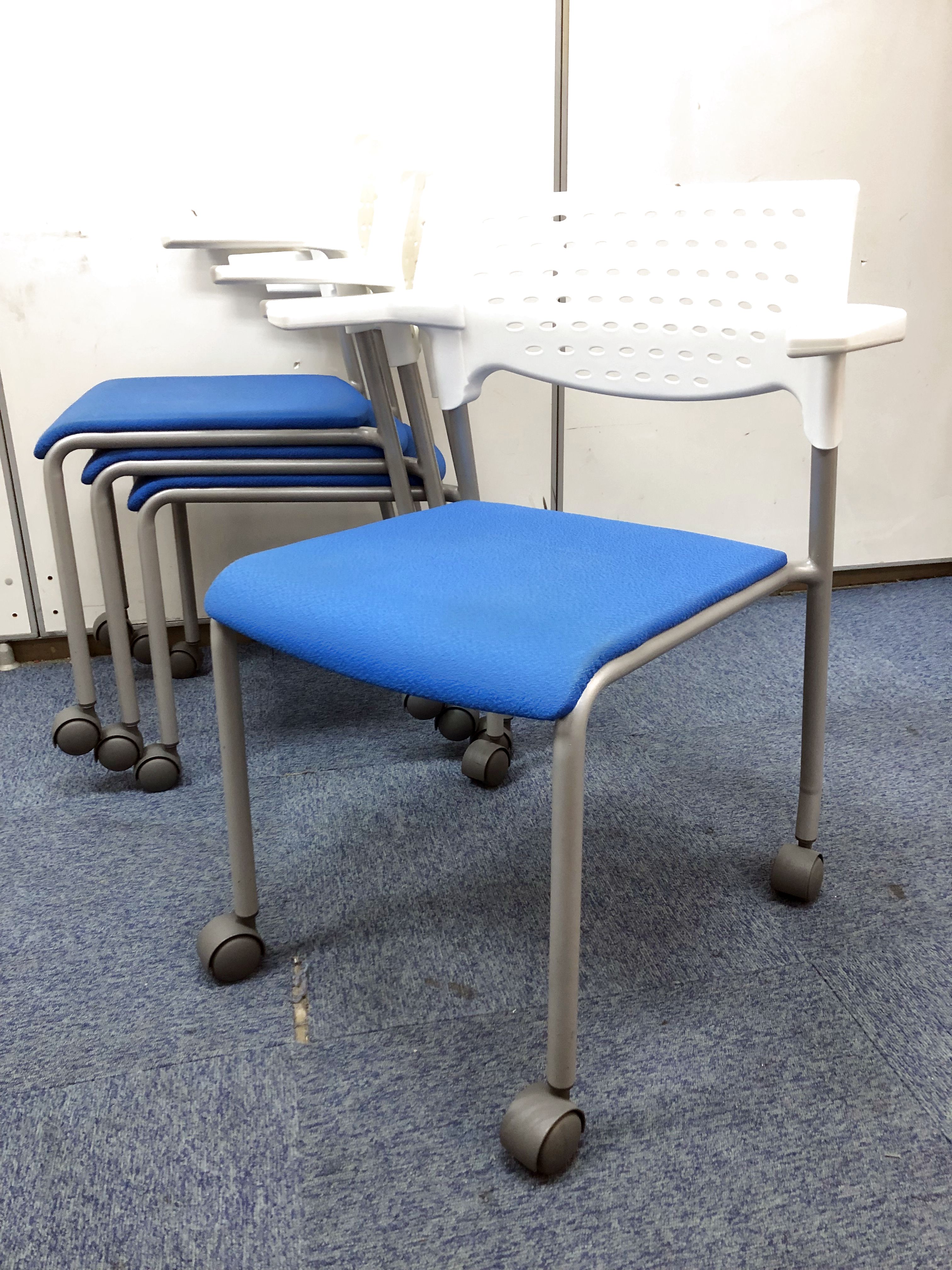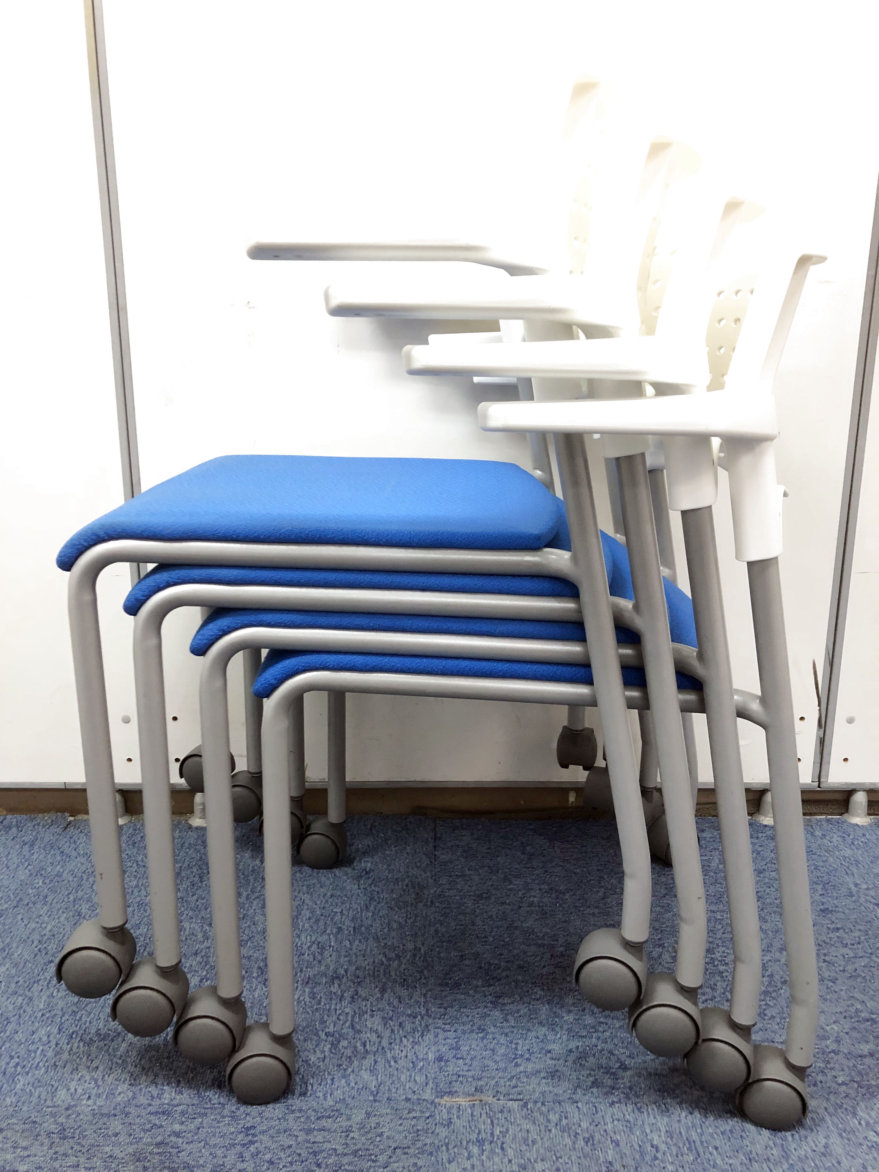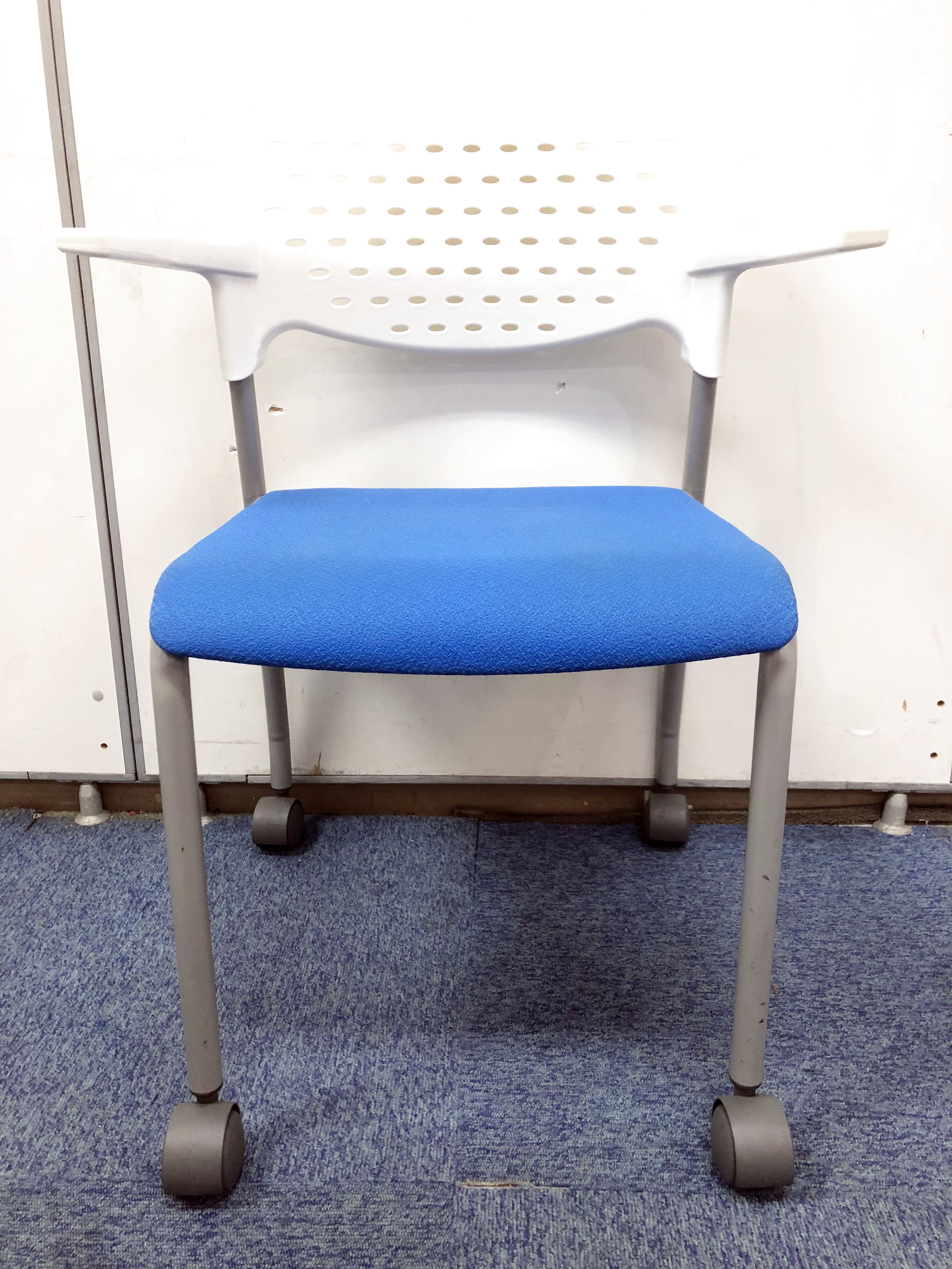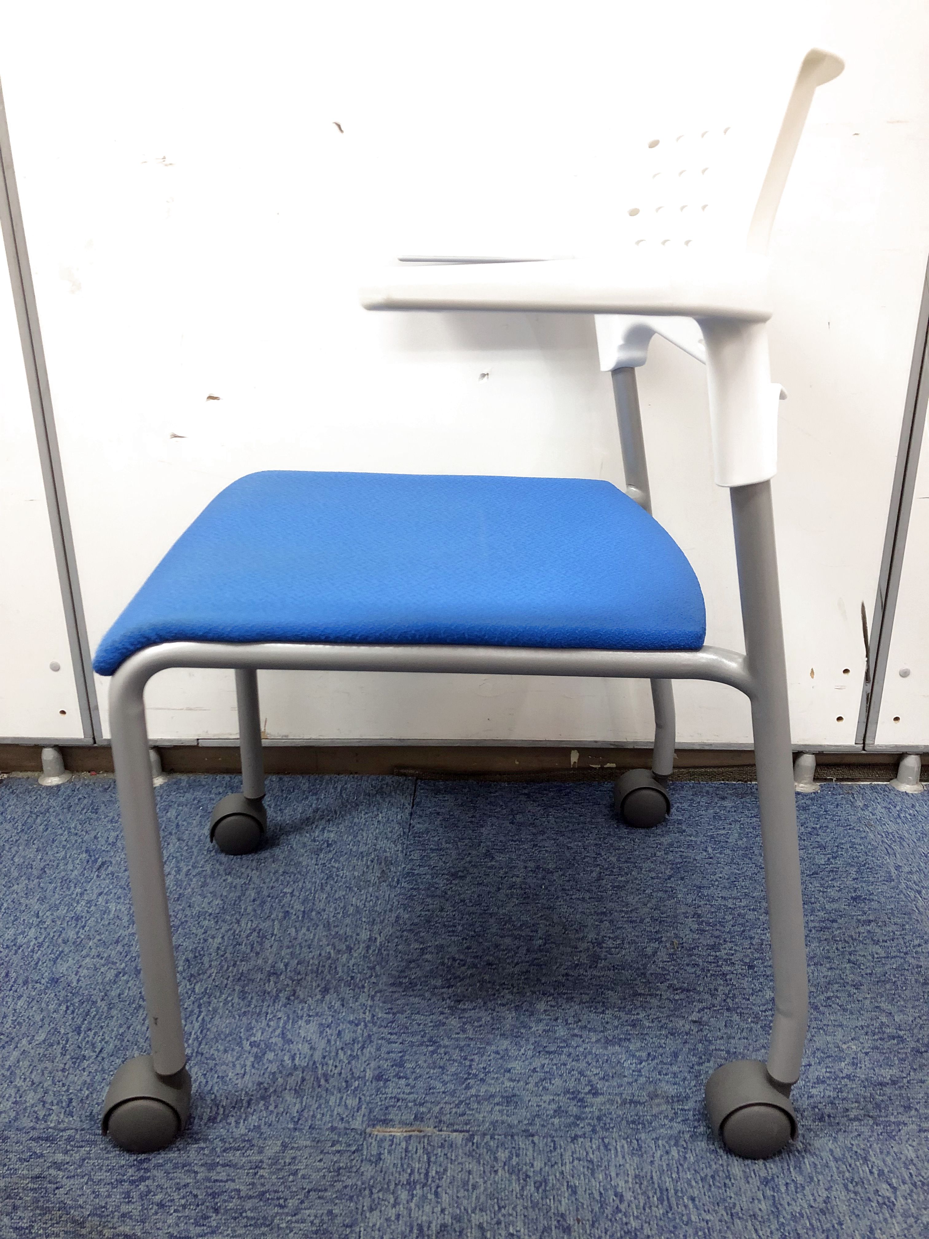 【1脚限りのため特別価格】肘付きスタッキングチェア ブルーxホワイトカラー!!- 京都東寺店