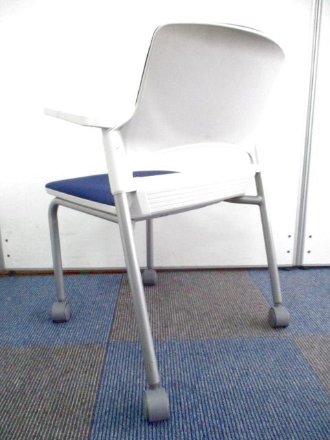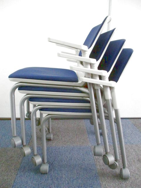 【残り2脚の為、お安く!】【キャスター付きで使いやすい!ミーティングに最適!】■ウチダ(UCHIDA)製 MF-180シリーズ スタッキングチェア ミーティングチェア ■キャスター付き ■レイズンブルー×ホワイトシェル