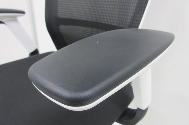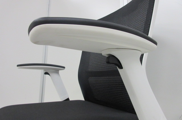また、個人的にオススメなのは『フルアジャスタブル肘』というアーム部分が斜め前に伸びていくタイプの肘置きを搭載したモデルです。高さを上げれば上げるほどパッドが前方に迫り出していくので、デスクワークの際にちょうど肘を置きたい場所に肘置きがきます。これがとても快適なので、ぜひ一度お試しいただきたいです!*エルフィチェアの肘パーツはフルアジャスタブル肘の他に、固定肘、アジャスタブル肘などがあります。