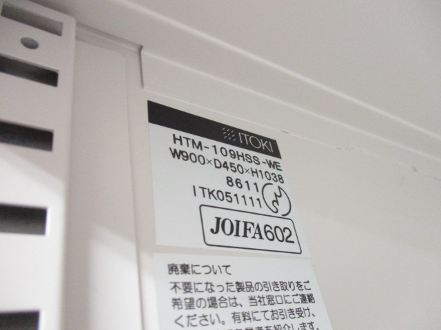 【中古】 シンライン HTM-109HSS-WE HTM-109AAS-WE JOIFA602 イトーキ/ITOKI ハイキャビネット/その他 243143
