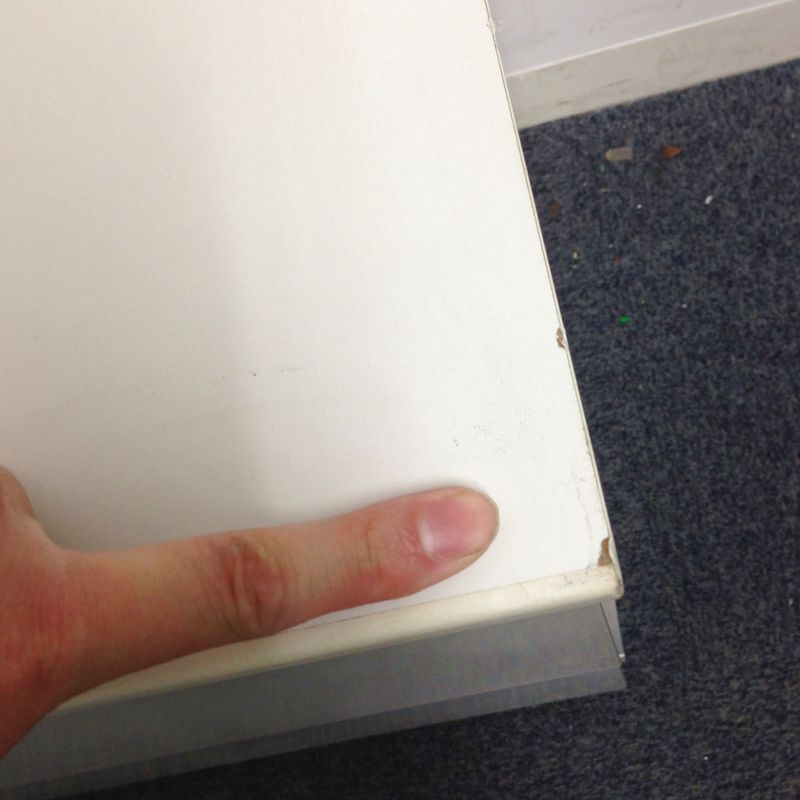 - あり黄ばみ・変色が広い範囲にうっすらある、または濃い黄ばみ・変色が一部ある。(例、天板、正面、背部、サイド部分にある。)