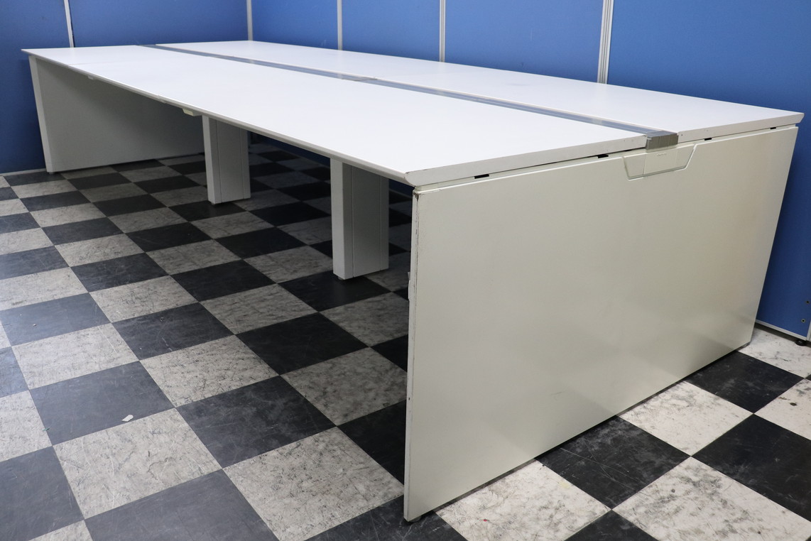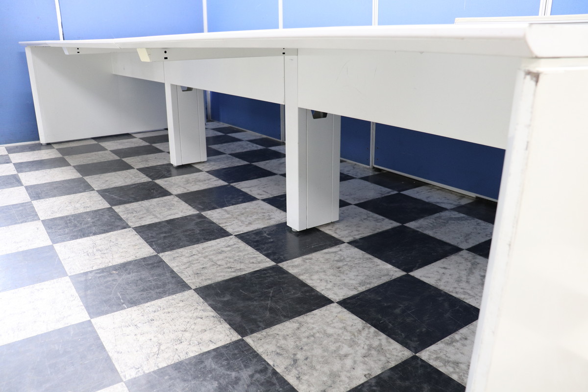 【見た目がおしゃれなフリーアドレスデスク】幅3600㎜ 奥行1400㎜ 高さ720㎜ オカムラ/プロユニットフリーウェイ/天板:ホワイト/脚:ホワイト 中古家具