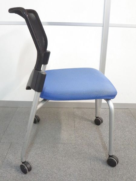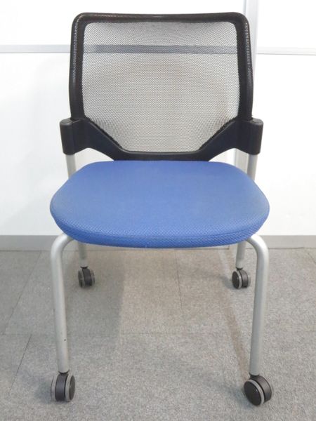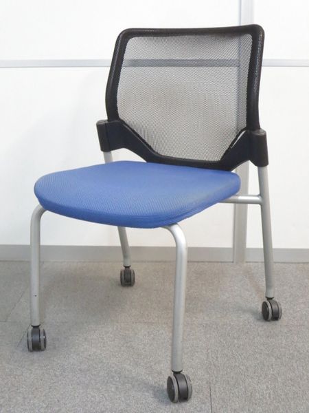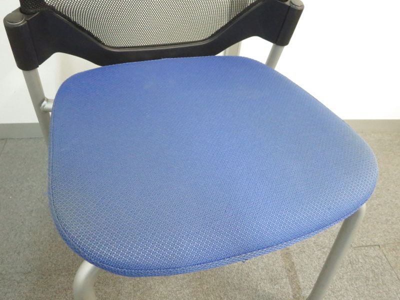 【訳あり特価品】■オカムラ製 スタッキングチェア ■エアリ(Airly)ブルー ■※パーツ欠け- 川崎店
