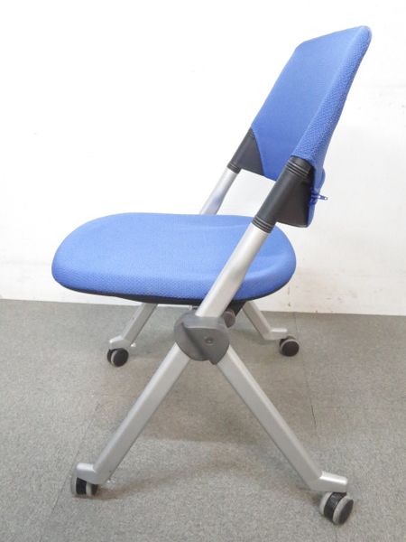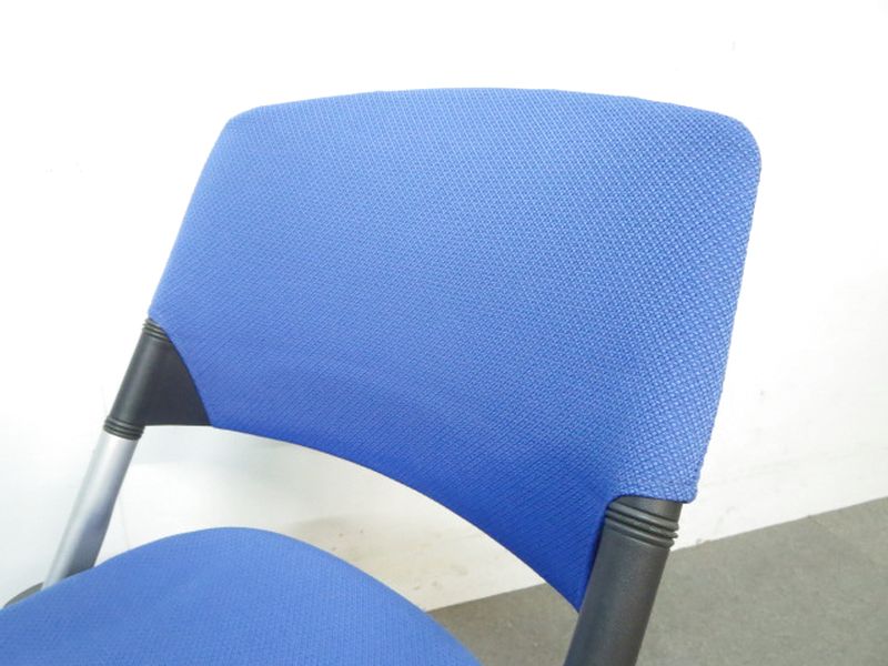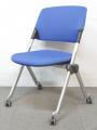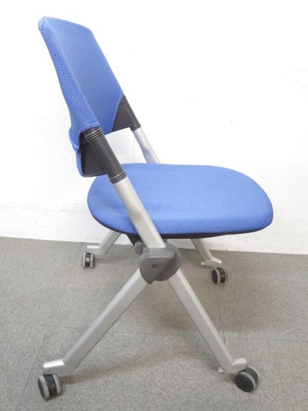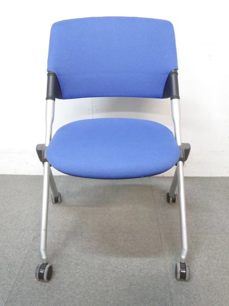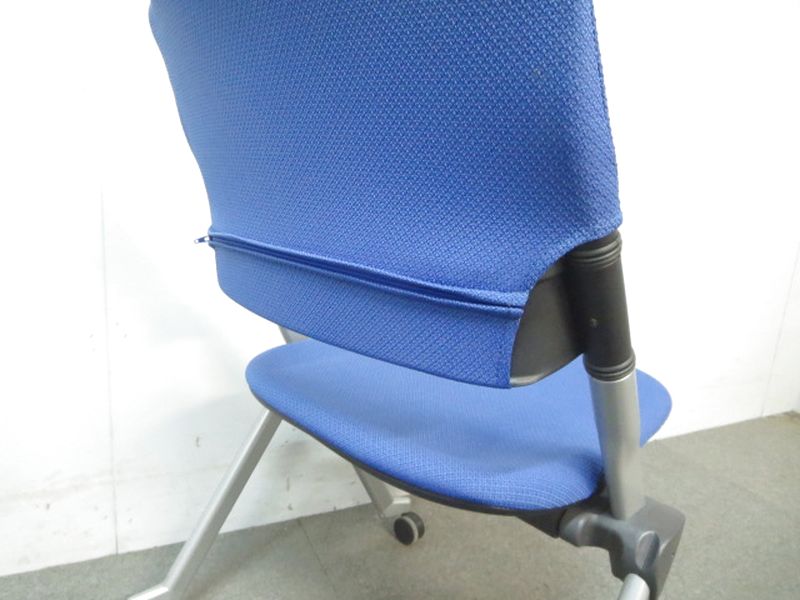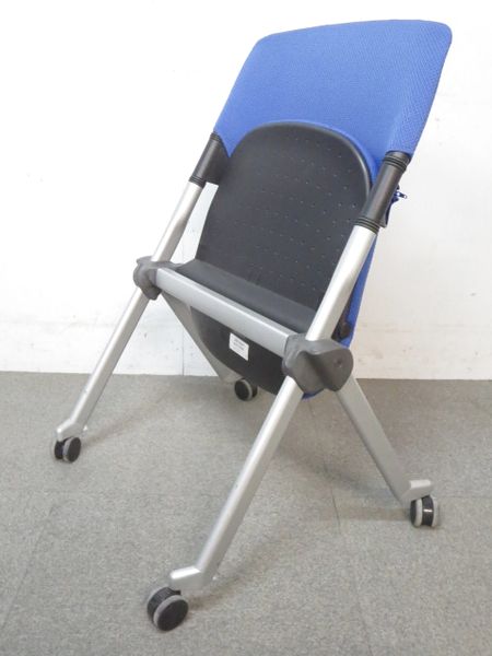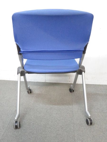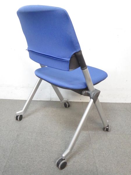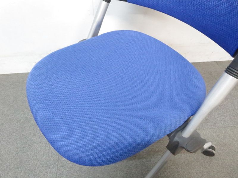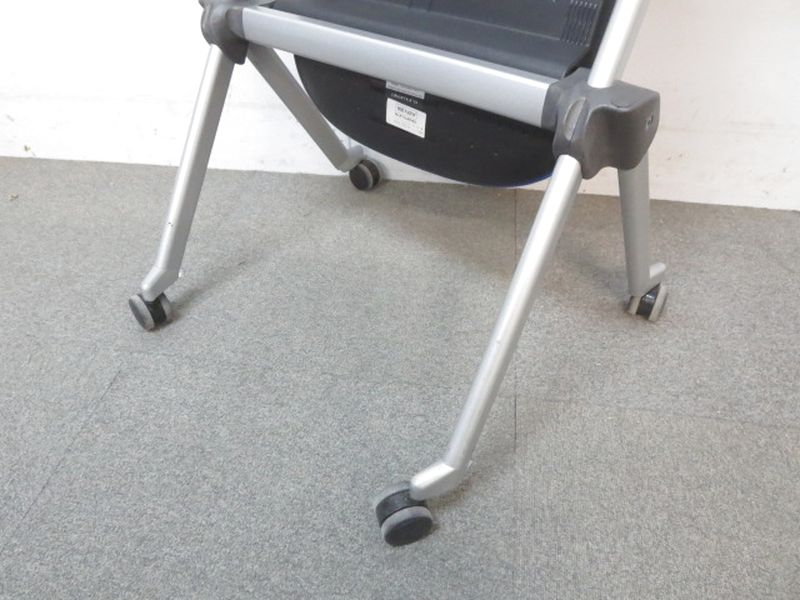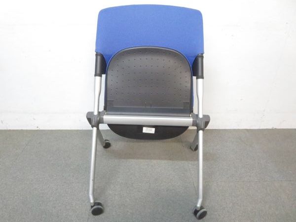 ■オカムラ スタッキングチェア ■キャスター付 ■ブルー ■水平・垂直2種類のスタッキングで整理も簡単!- 川崎店