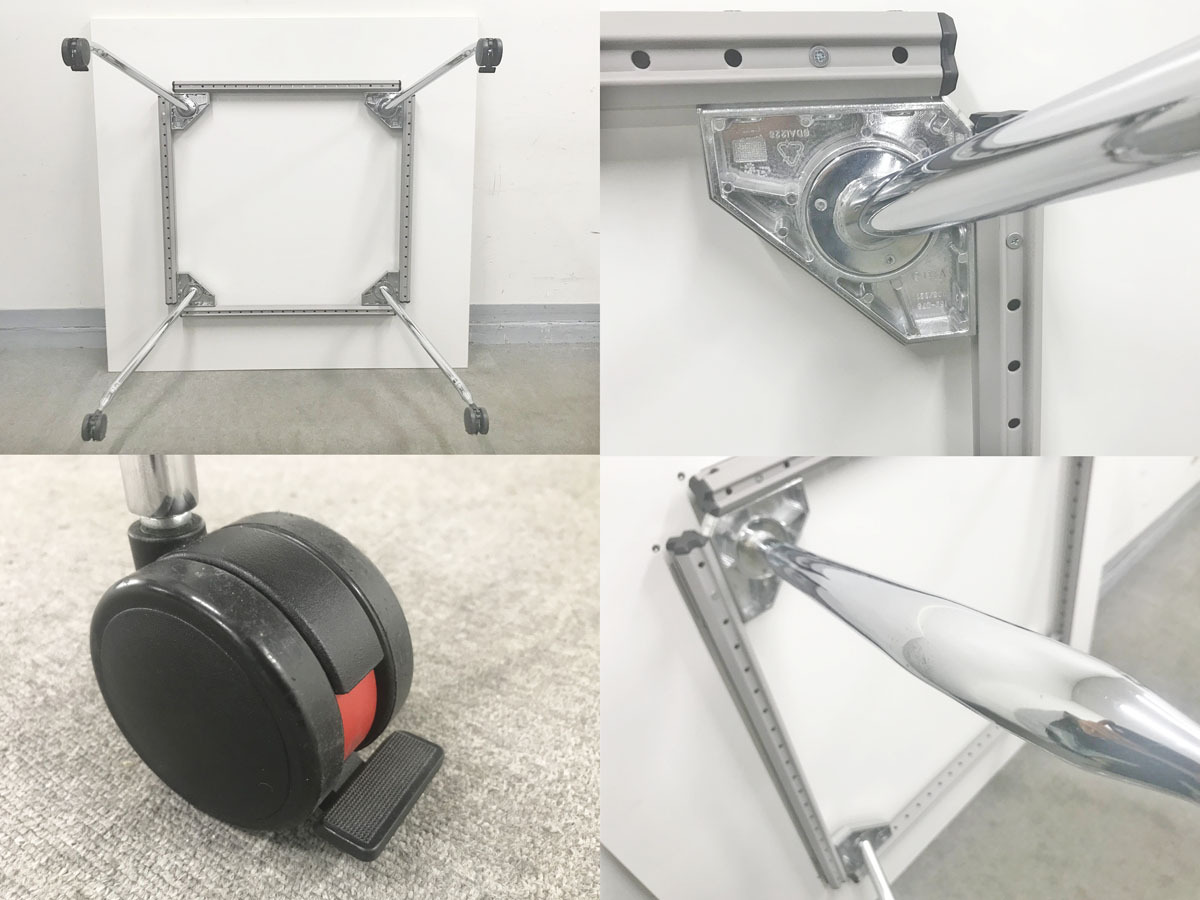 - 一部不具合あり天板歪み、アジャスター無し、キャスター使用不可ようなそのテーブルの本来の効用を果たすための機能以外の一部が使用不可な状態。(例、キャスターロッ ク機能使用不可、棚板無し等がある。)