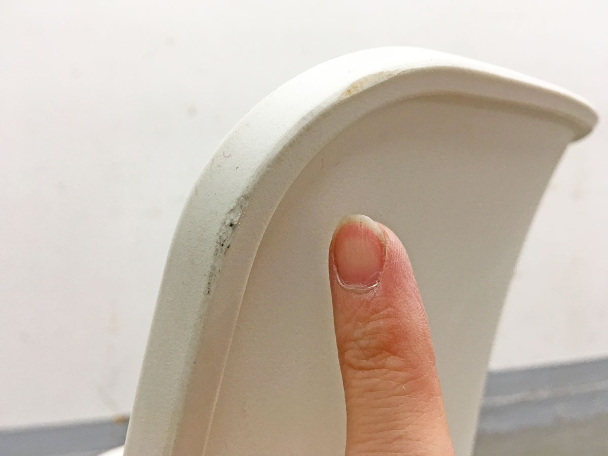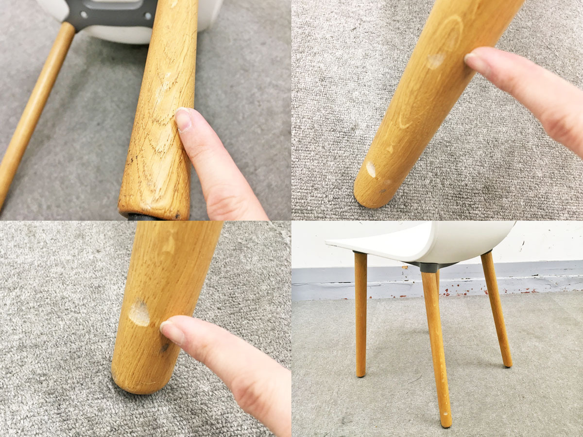 - 目立つ箇所あり傷・破れ・ほつれ・へたり・しわが多数または深い傷・破れ・ほつれ・へたり・しわが一部ある。※座面・背もたれ、シェル、脚部等にある。