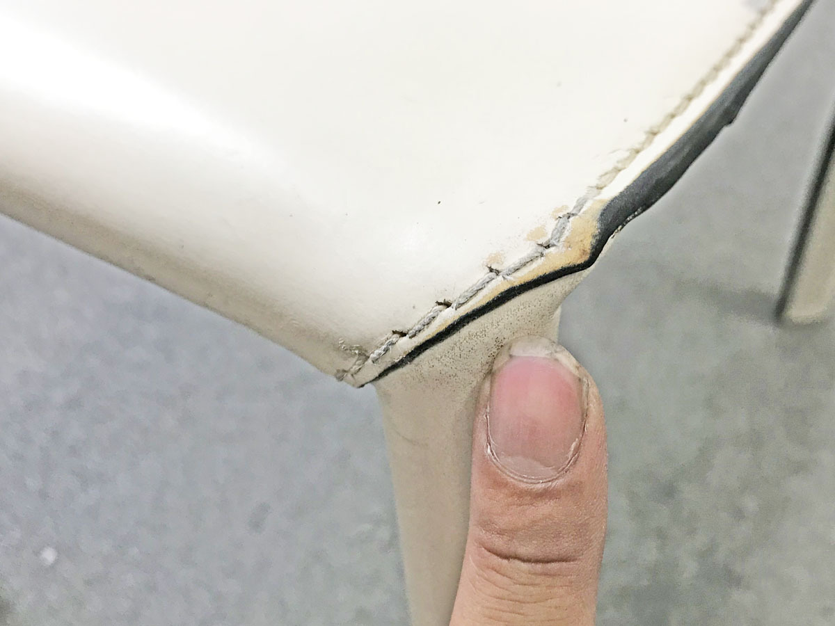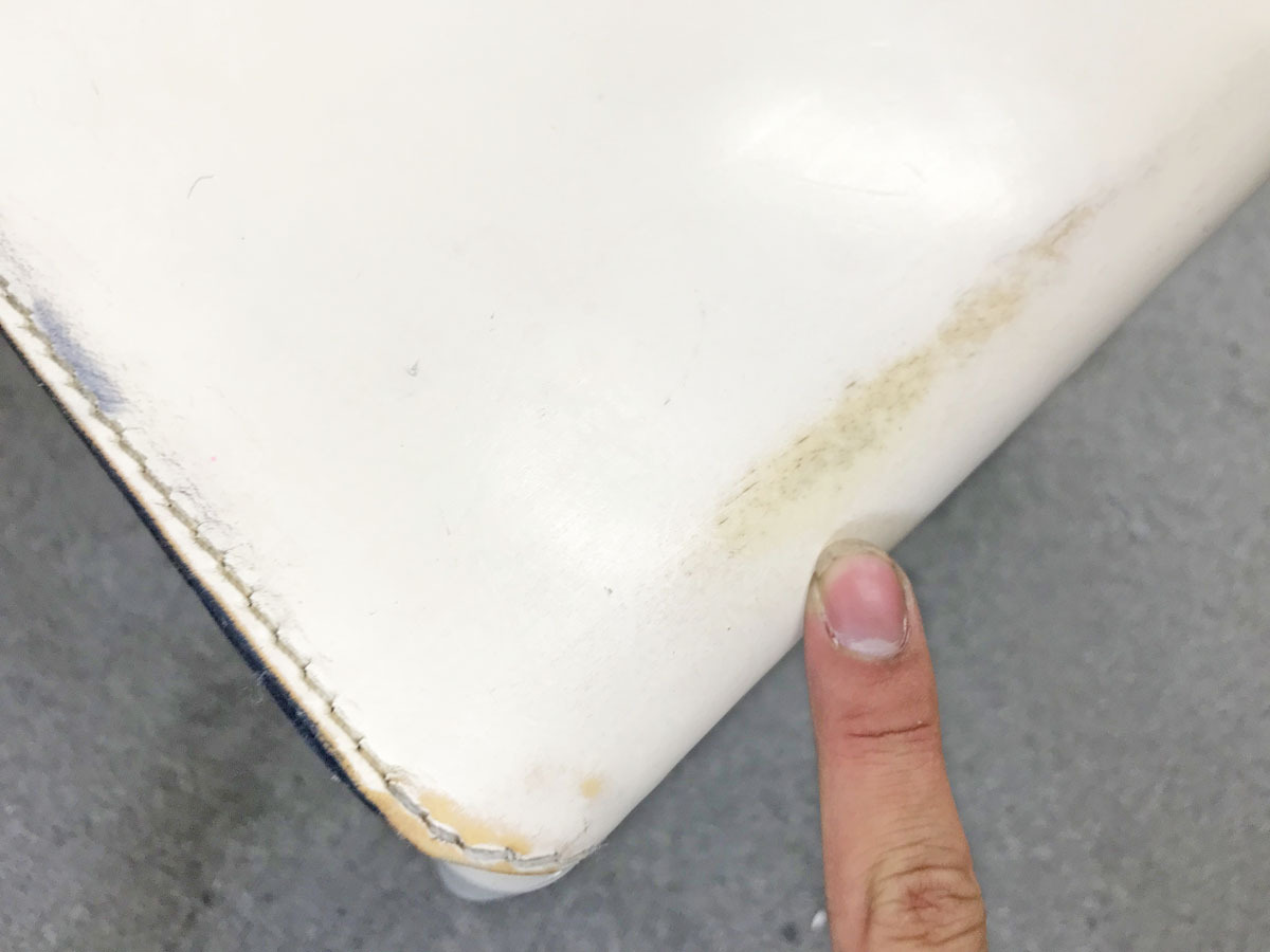 - あり黄ばみ・変色が広い範囲にうっすらある、または濃い黄ばみ・変色が一部ある。(例、座面・背もたれ、脚部等にある。)