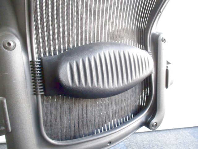 - 背もたれの裏にあるランバーサポート(パッド) の厚さは裏表で調節。上下の移動で、適切な高さ に調節できます。