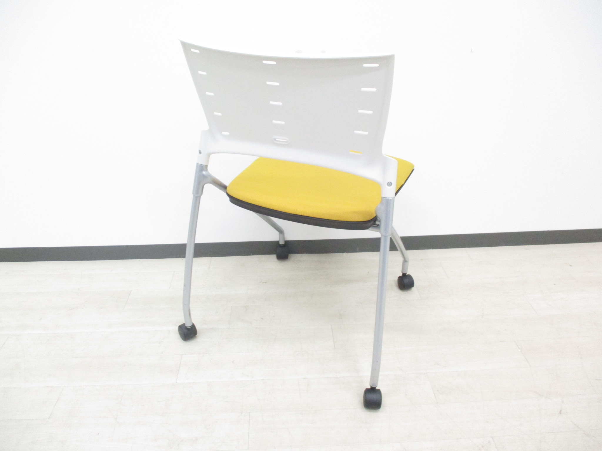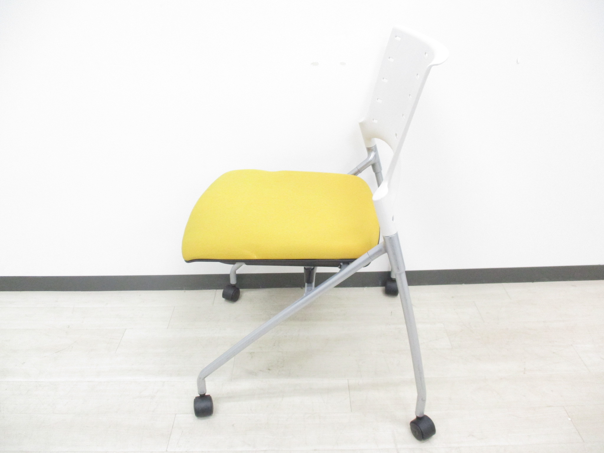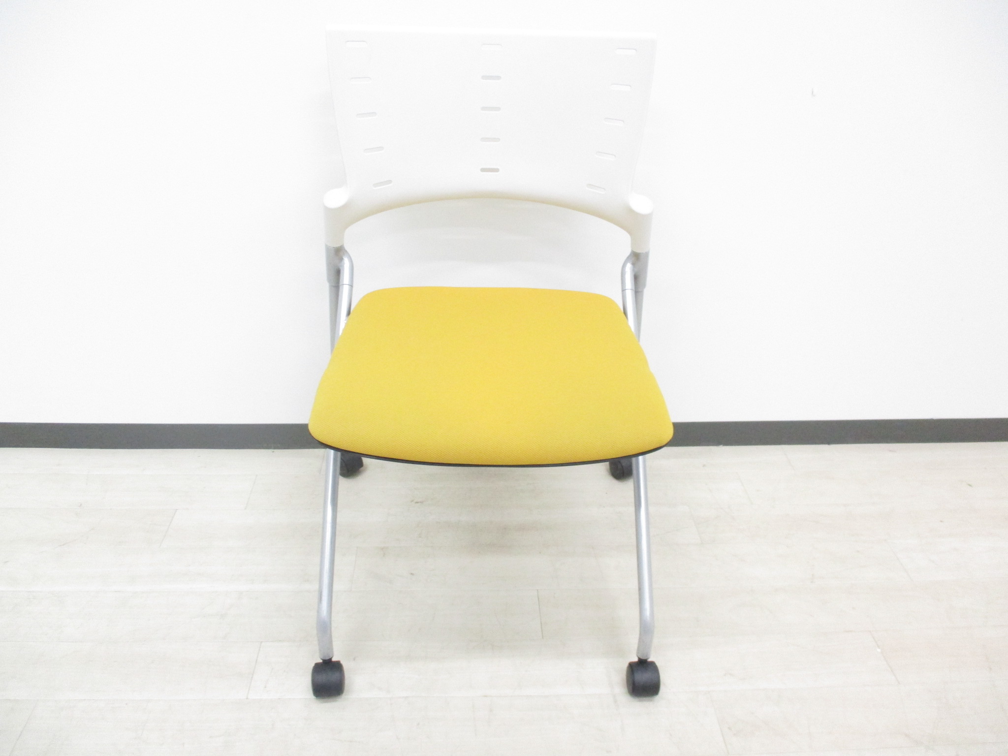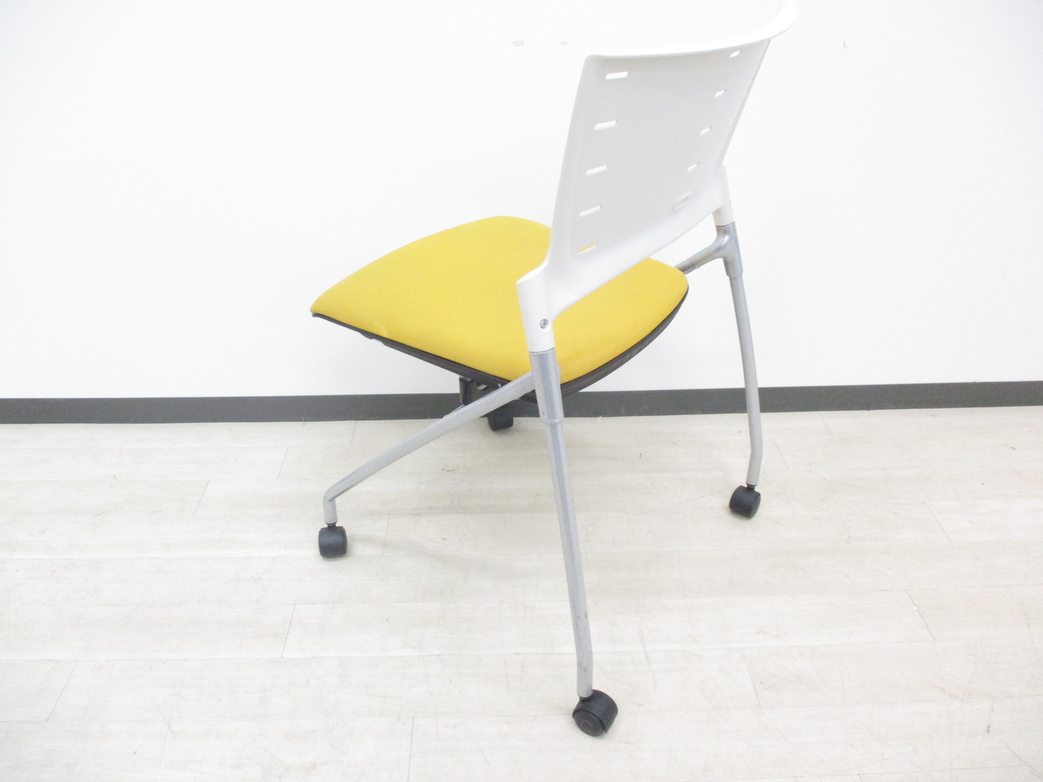 【快適に座れるミーティングチェア!】明るいオフィスになるイエローカラーの入荷です!デザイン性、座り心地の良いクッションのネスティングチェアです‼- つくば店