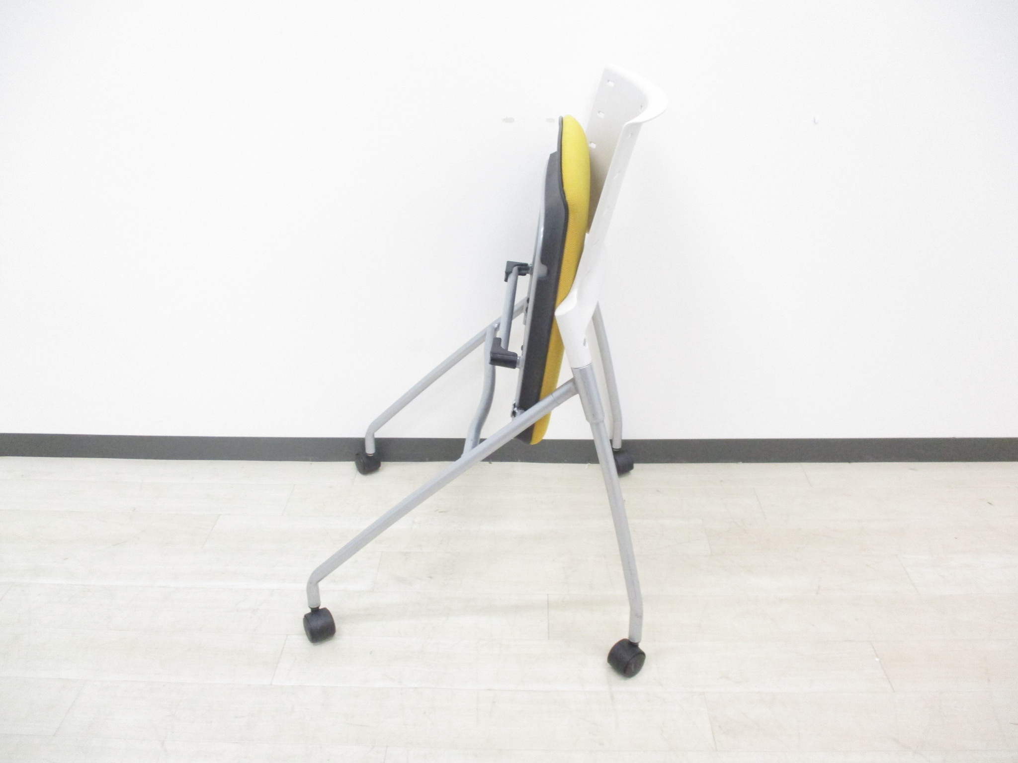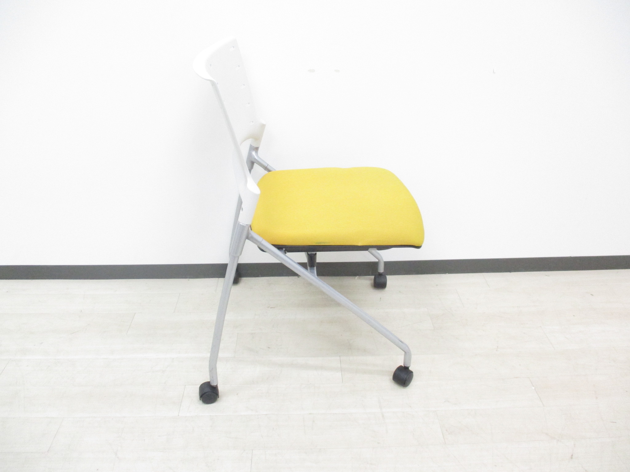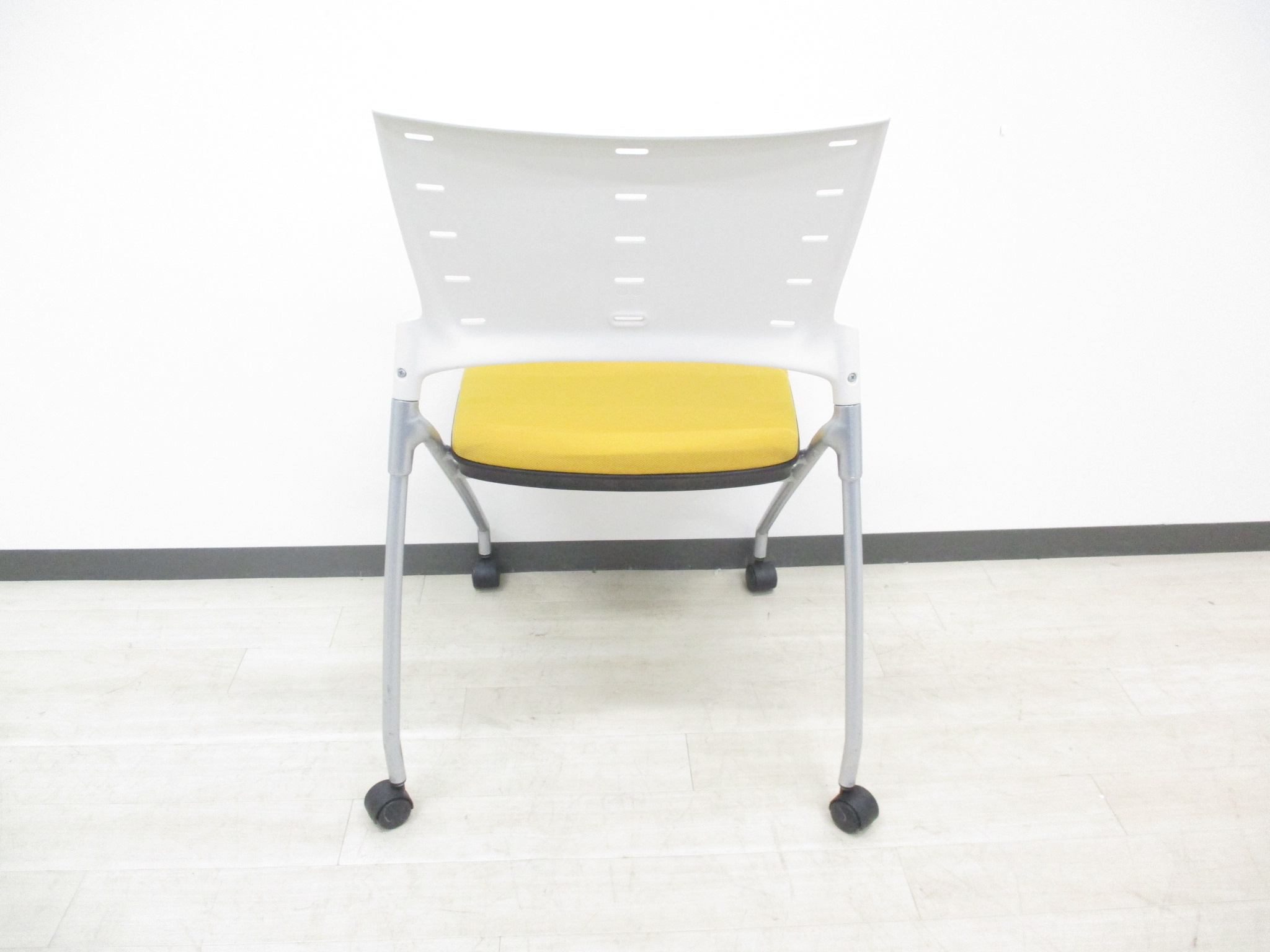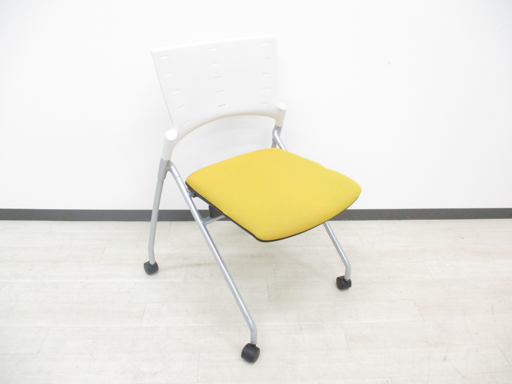 【快適に座れるミーティングチェア!】明るいオフィスになるイエローカラーの入荷です!デザイン性、座り心地の良いクッションのネスティングチェアです‼- つくば店