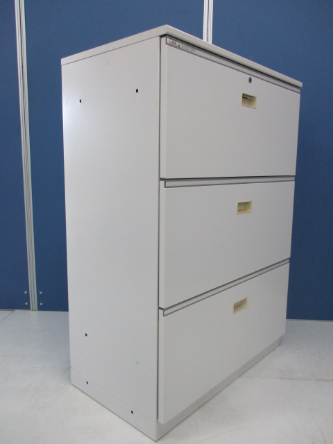 【A4ファイルも沢山収納可能!ホワイトカラーの人気シリーズ3段ラテラル書庫!】/オススメ(おすすめ) /人気商品【弊社使用欄:A01013834】3段ラテラル書庫/ローキャビネット/天板付き/ホワイト/シリンダー錠/ITOKI/THIN LINE■イトーキ/シンライン※取っ手部分日焼あり