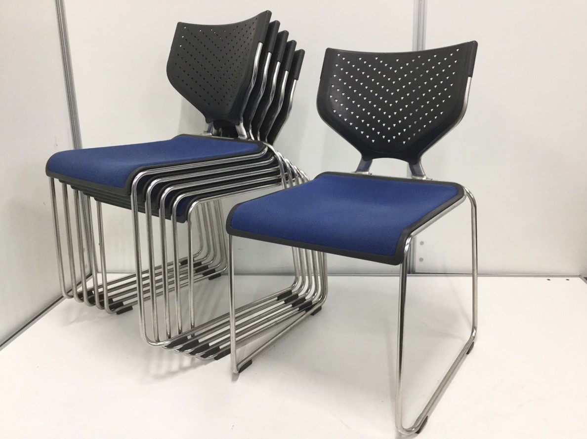 【グッドデザイン賞受賞!】■6脚セット!入れ替えや増員にはこちら!■オカムラ製■スタッキングチェア■【ブルーカラー】- 立川・八王子店