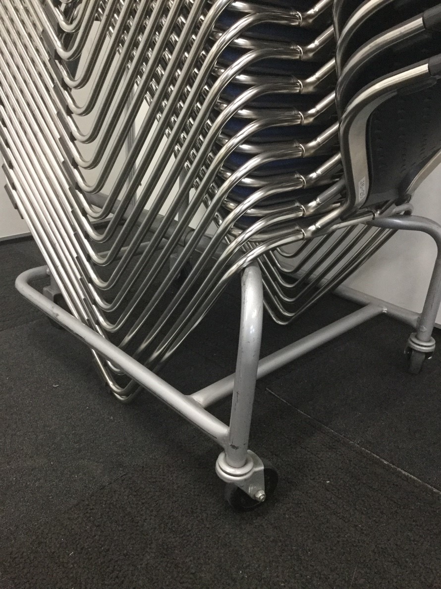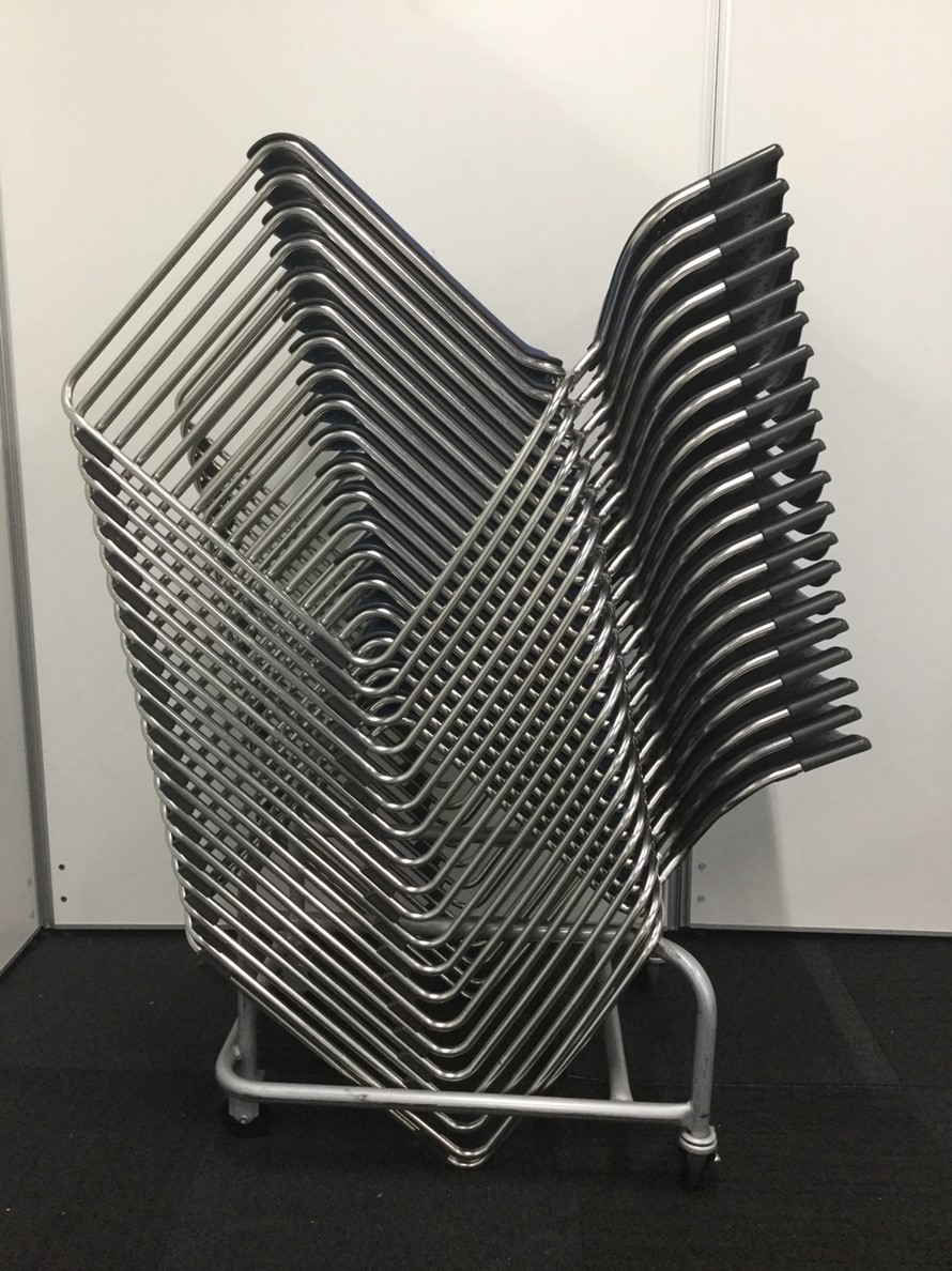 【な、なんと20脚まとめてセットに!!】■起業や増員には是非オススメ!20脚纏めて乗せられる台車付き!【ブルーカラー】- 立川・八王子店