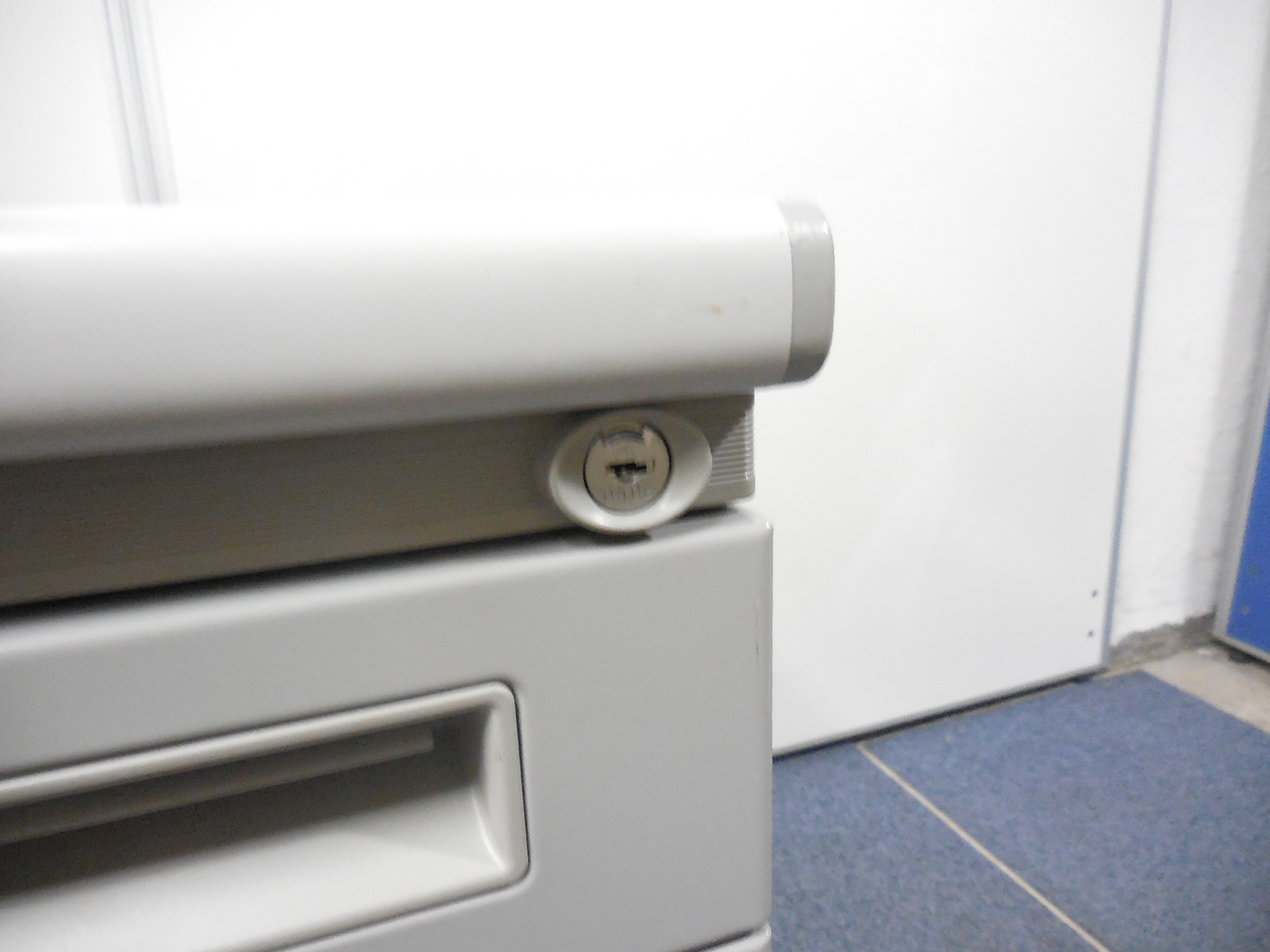 一度の施錠で袖の部分全ての引出しの鍵が掛かります。