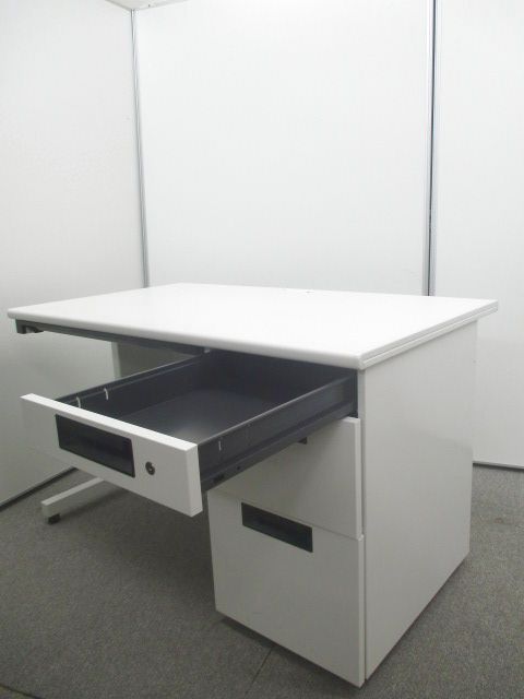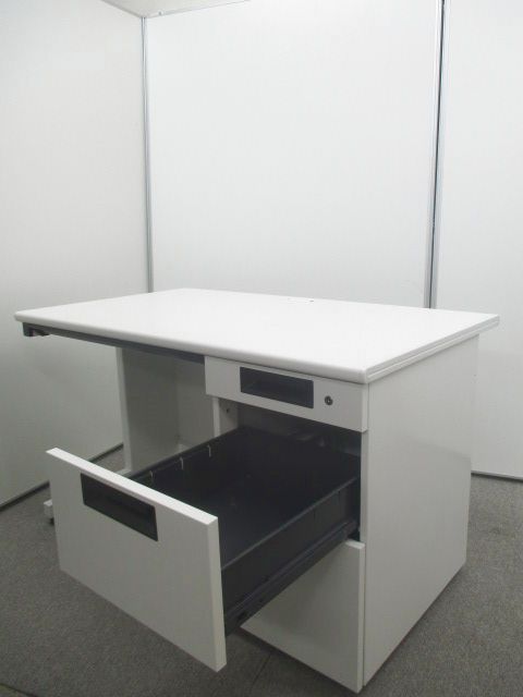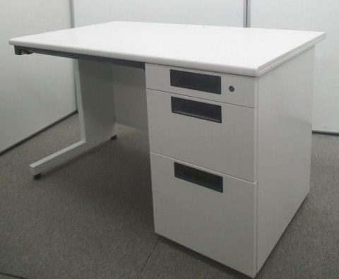 【定番サイズの幅1200㎜!オーソドックスな片袖デスクが入荷!】■プラス(PLUS)製 フラットライン 片袖机 引き出し付き 幅1200 ■ホワイト ※一部袖引き出しへこみあり 【弊社使用欄:A01040197】【KN】