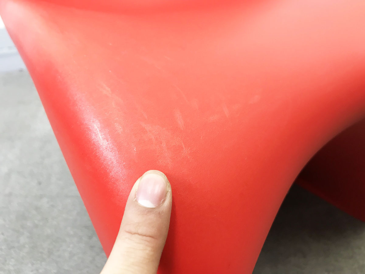 - 目立つ箇所あり傷・破れ・ほつれ・へたり・しわが多数または深い傷・破れ・ほつれ・へたり・しわが一部ある。※座面・背もたれ、シェル、脚部等にある。
