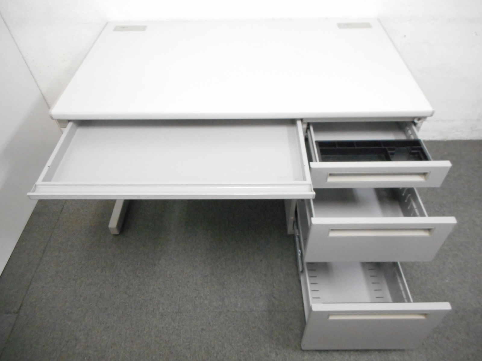 広々とした倉庫スペースに豊富な在庫がございます。オフィス家具が中古で一式そろいます!