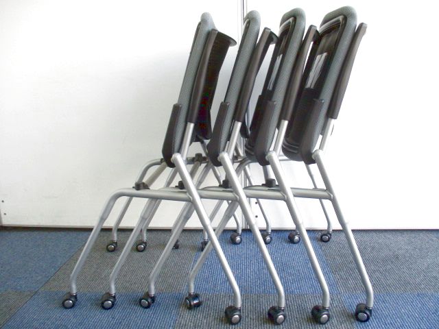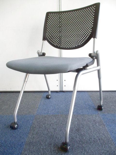 スペース空間を最大限に生かせる座面が跳ね上げ可能なネスティングチェア! ■オカムラ/プロスタック/グレー
