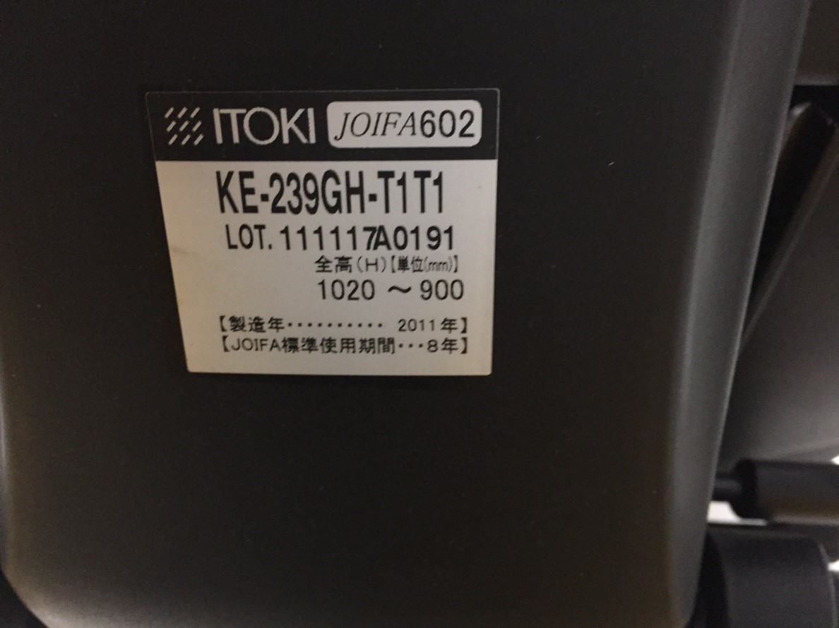 イトーキ製のプラオチェアです。可動肘タイプ。