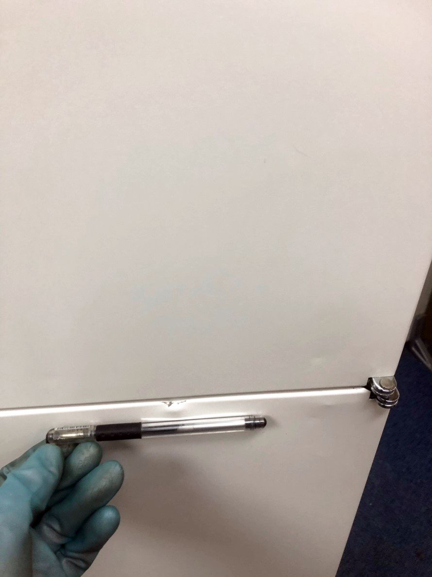 下段の右扉、上の方に1cm程の傷・凹みがある為
