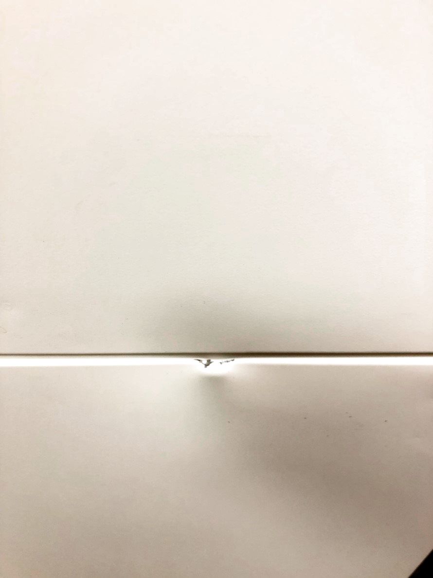- あり黄ばみ・変色が広い範囲にうっすらある、または濃い黄ばみ・変色が一部ある。(例、天板、正面、背部、サイド部分にある。)