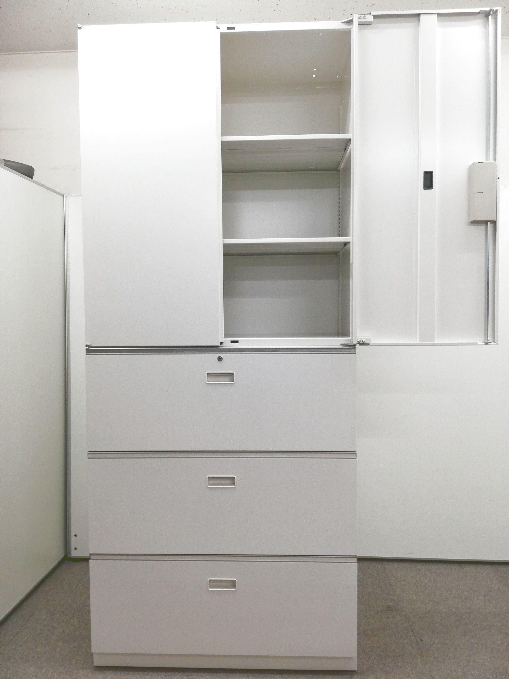 【引き違い+引き出しの組み合わせ 】◆イトーキ/シンライン 引き戸 3段ラテラル 本棚 収納 家具 リユース 九州最大級《オフィスバスターズ福岡博多店は、福岡を拠点として、日本全国へ中古オフィス用品・オフィス家具を提供しております》