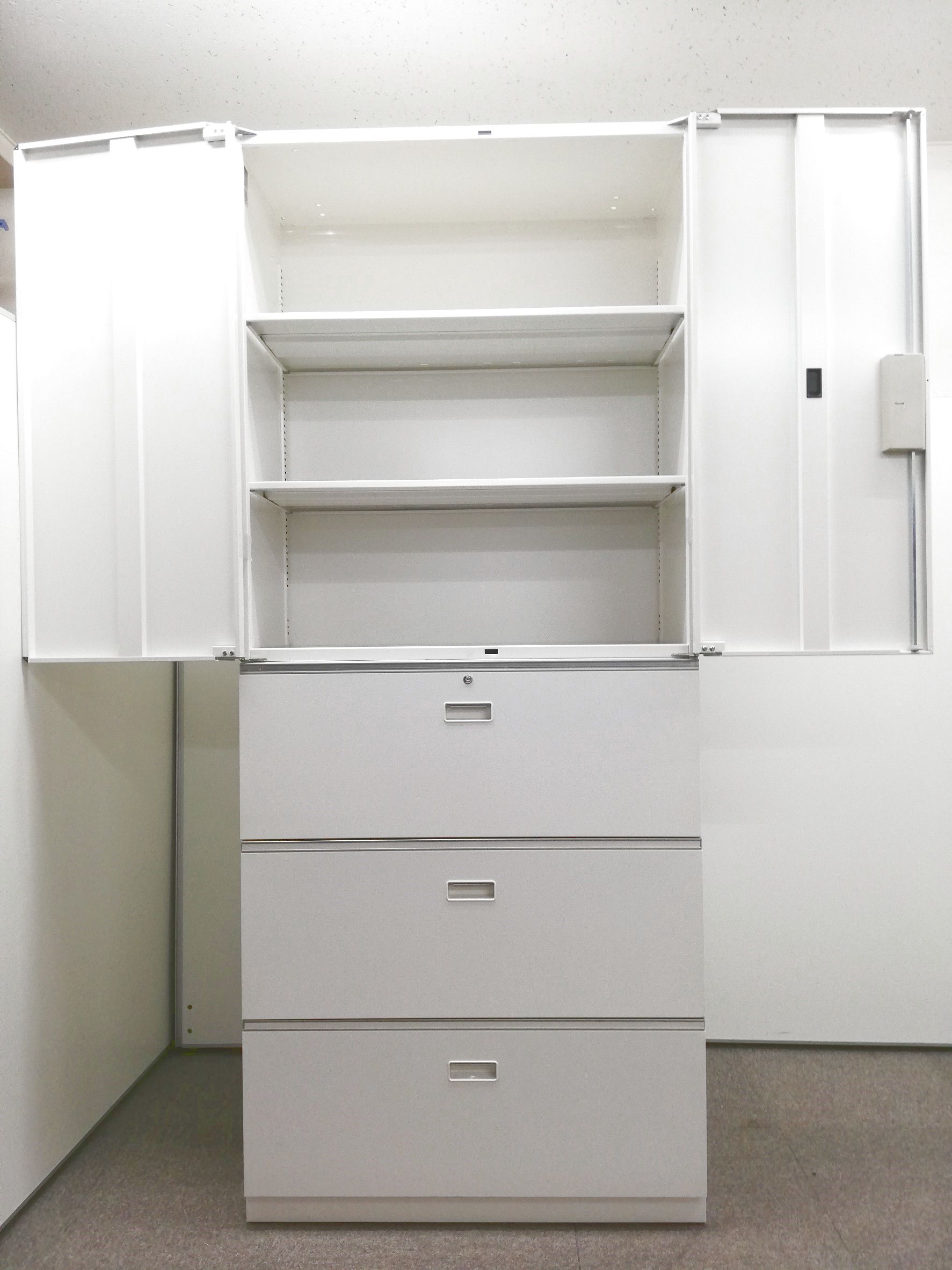 【限定1セット!!】中身が見やすい両開きタイプ+定番の3段ラテラルの書庫セットが入荷いたしました。【日本橋】【オフィス中古家具】- 日本橋店
