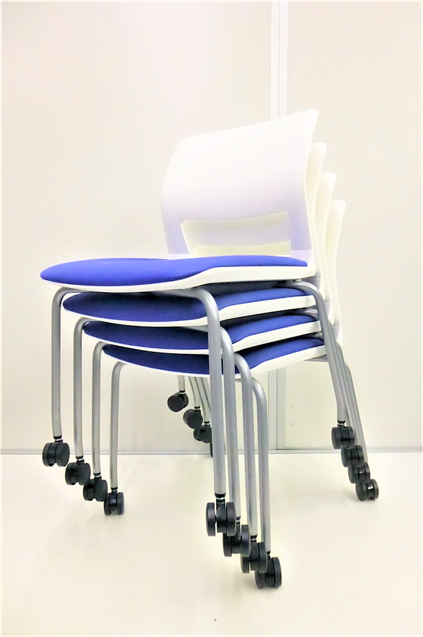 【重ねて収納可能!スペースの削減にお勧めなスタッキングチェア!】■コクヨ(KOKUYO)製 CK-160 スタッキングチェア ミーテイングチェア ■背カバーあり ■ブルー×ホワイトシェル