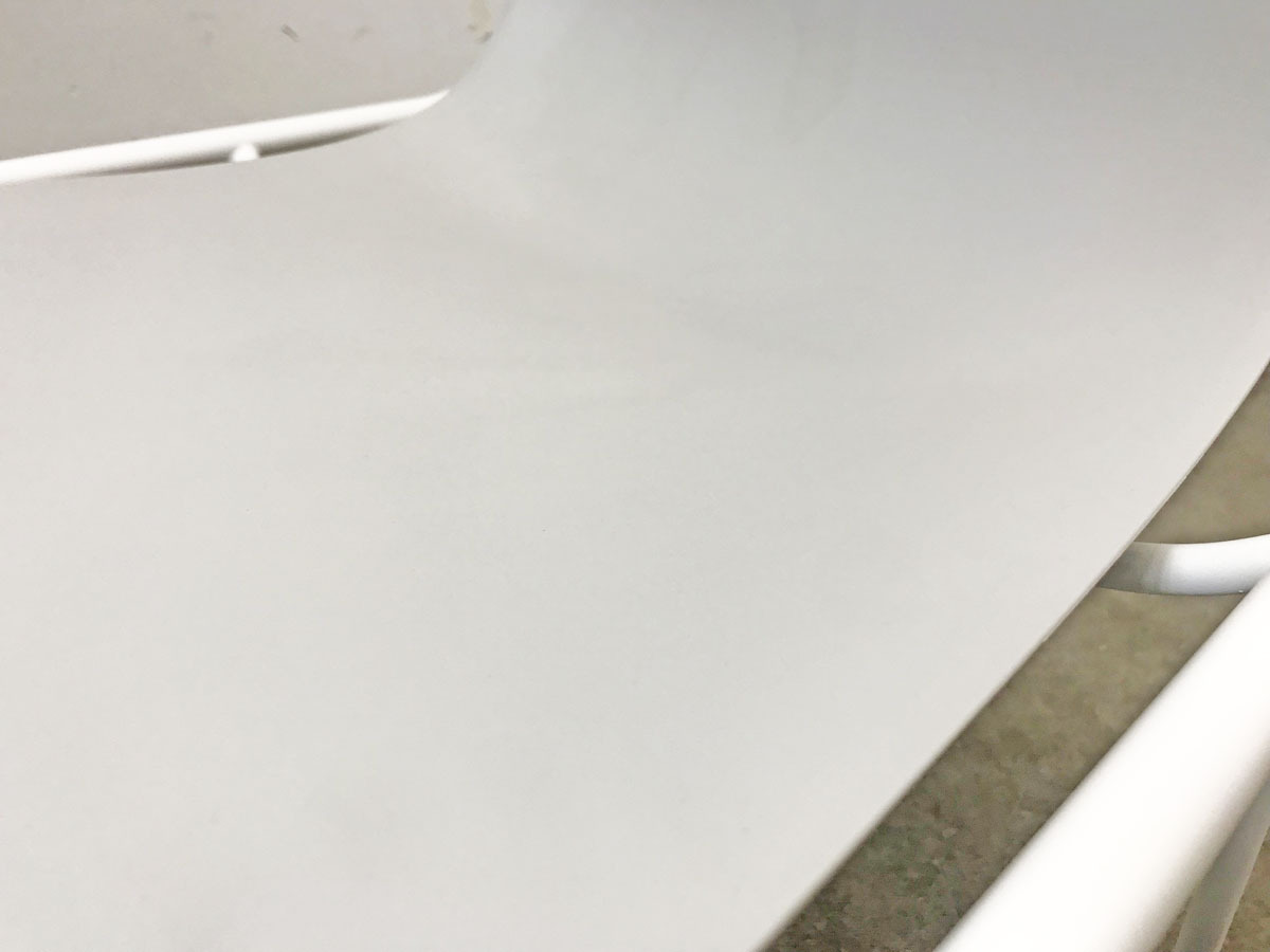 - かなり強い濃い黄ばみ・変色が商品全体にある。(例、座面・背もたれ、脚部等にある。)